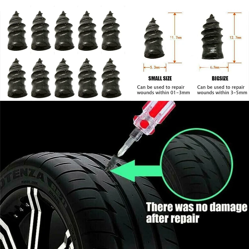 Без потерь и эффективностиВнутренний диаметр менее 5 мм, отсутствие повреждений шин, отсутствие утечки воздуха. Просто вставьте гвоздь в рану шины для завершения простой и эффективной работы по ремонту шин.Идеальный эффект запечатыванияОн прочно прилипает к шине, высокая прочность соединения, хорошая производительность герметизации предотвращает попадание воды в рану, поэтому стальной ремень не будет ржаветь или расслаиваться.Простота в эксплуатацииЛегко установить с помощью этого гвоздя для ремонта шин, вы можете отремонтировать свои шины самостоятельно, не находите магазин для ремонта авто, экономичный и экономный по времени.Высокая температура и износостойкостьИзготовлен из высококачественной резины, отличается высокой термостойкостью, высокой твердостью и высокой износостойкостью. Длительный срок службы, одного ремонта достаточно, нет необходимости в двух ремонтах.Широкое применениеПрофессиональный гвоздь для ремонта проколов, может использоваться на автомобилях, грузовиках и сельскохозяйственных шинах.