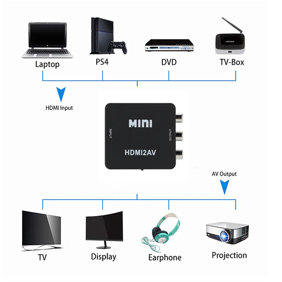 HDMI-совместимый с AV RCA CVSB LR видео 1080P скалер преобразователь коробка HD видео композитный адаптер HDMI2AV адаптер Поддержка NTSC PAL