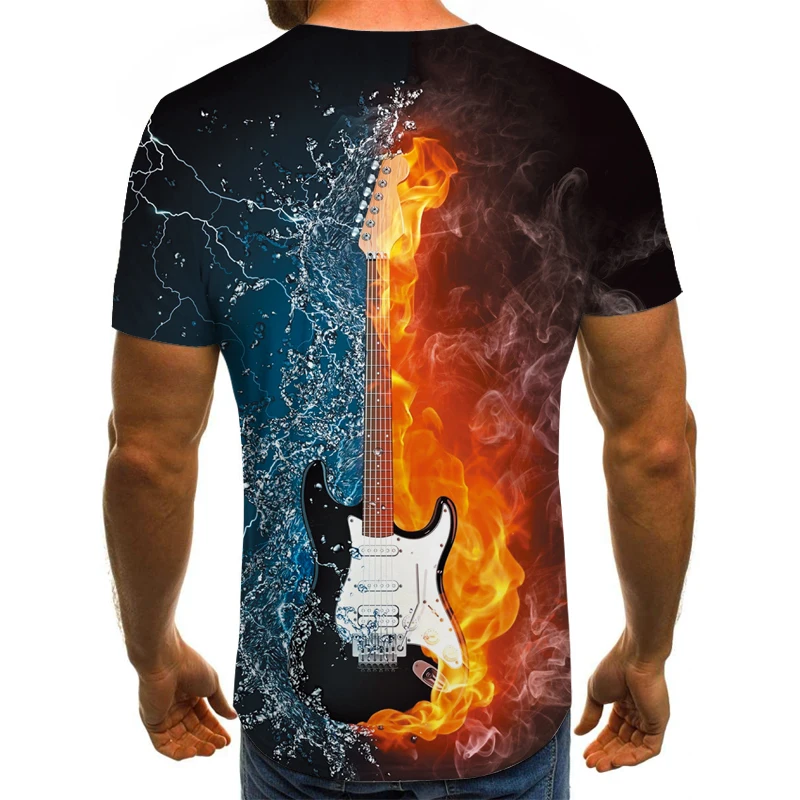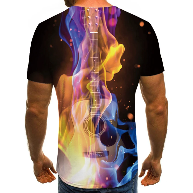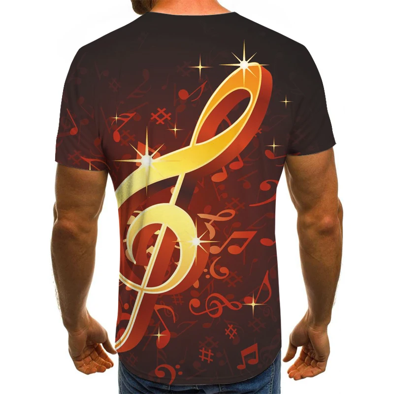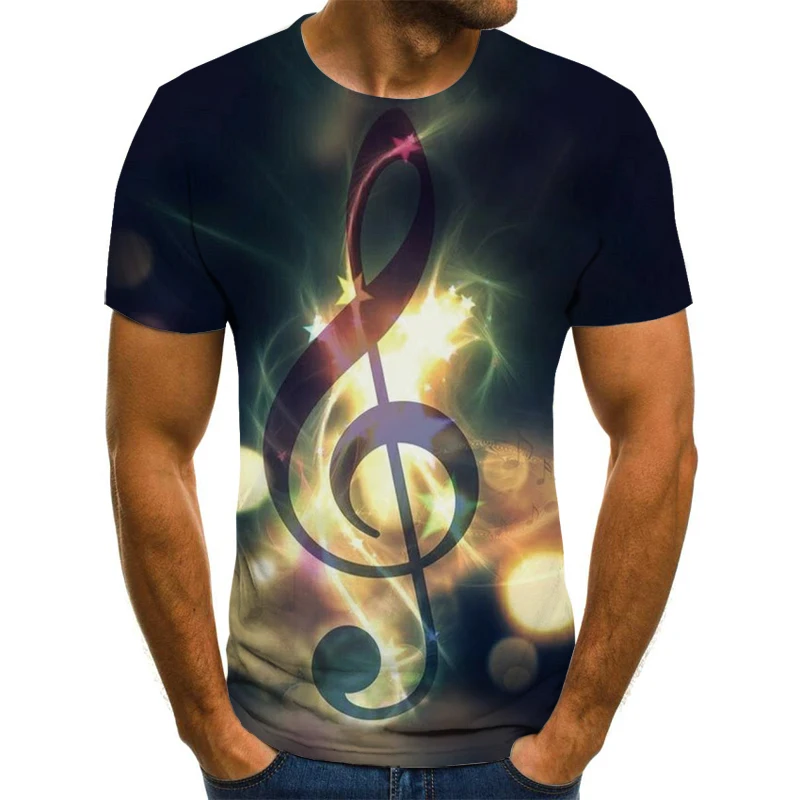 Футболка мужская с принтом музыкальных символов, рубашка с объемной гитарой, одежда в готическом стиле аниме, футболка с коротким рукавом, 110-6XL