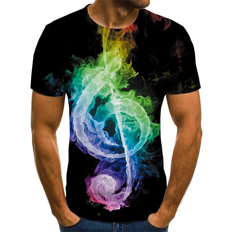 Футболка мужская с принтом музыкальных символов, топ с коротким рукавом в готическом стиле, футболка с 3d-гитарой, одежда для аниме, 110-6XL, лето