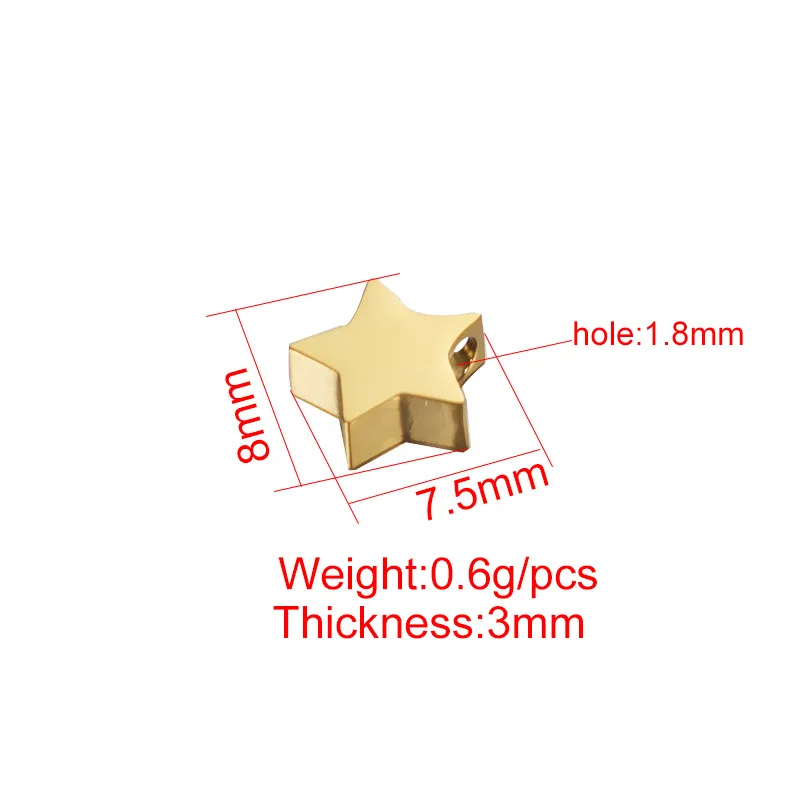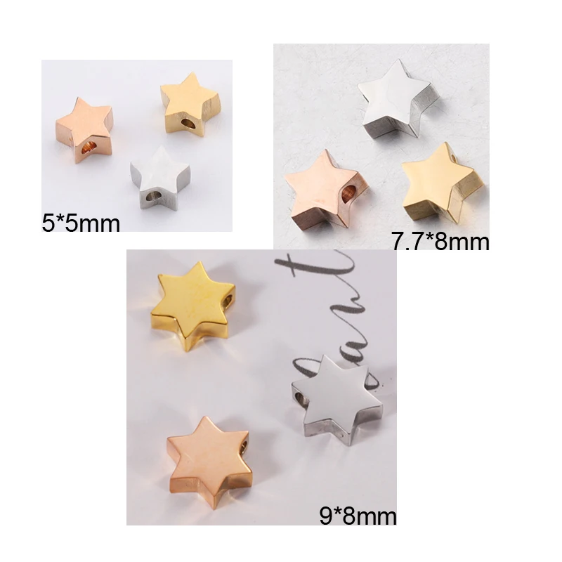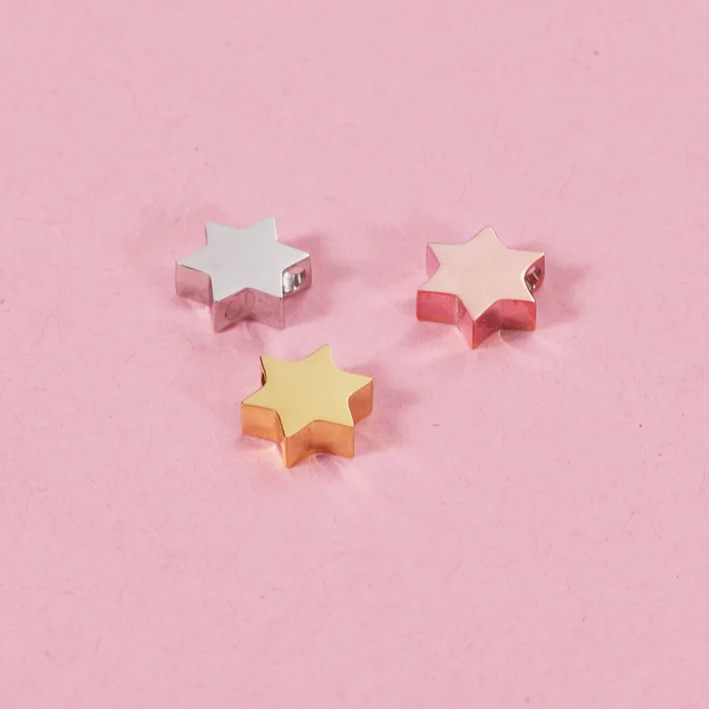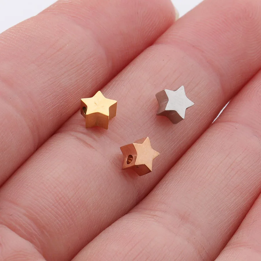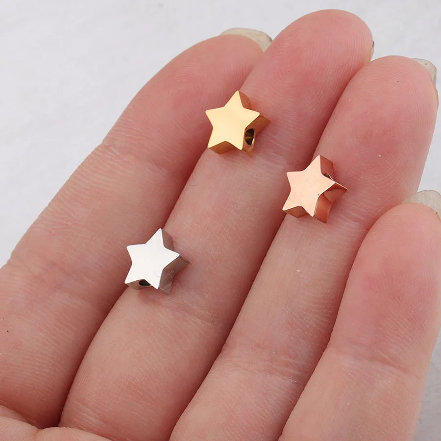10 шт., зеркальные блестящие позолоченные бусины-звезды из нержавеющей стали