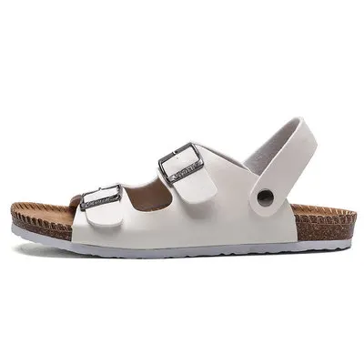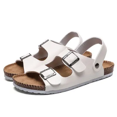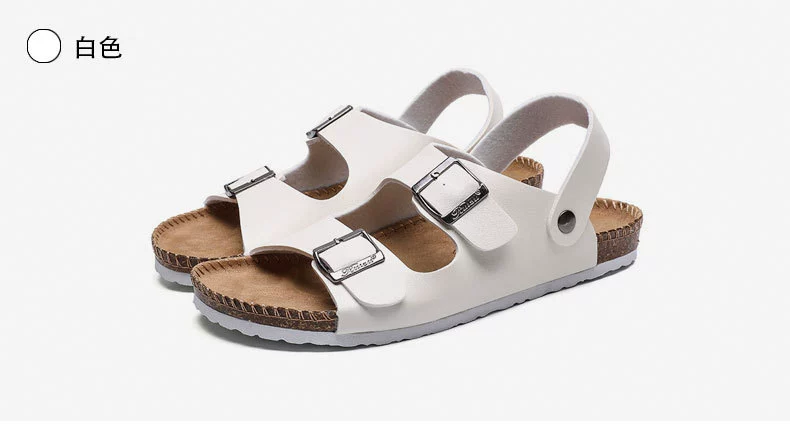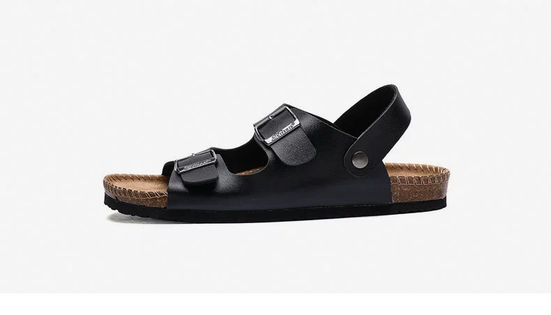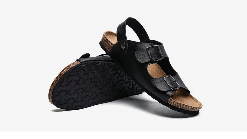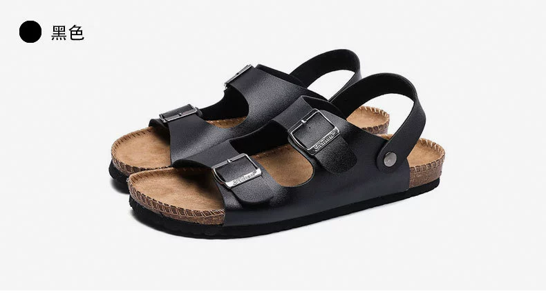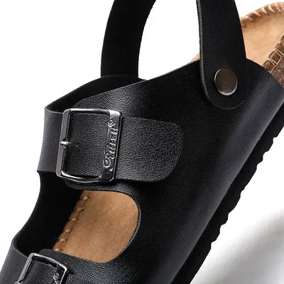 Шлепанцы мужские, летние, пробковые, пляжные, Корейская версия, кожаные сандалии-шлепанцы