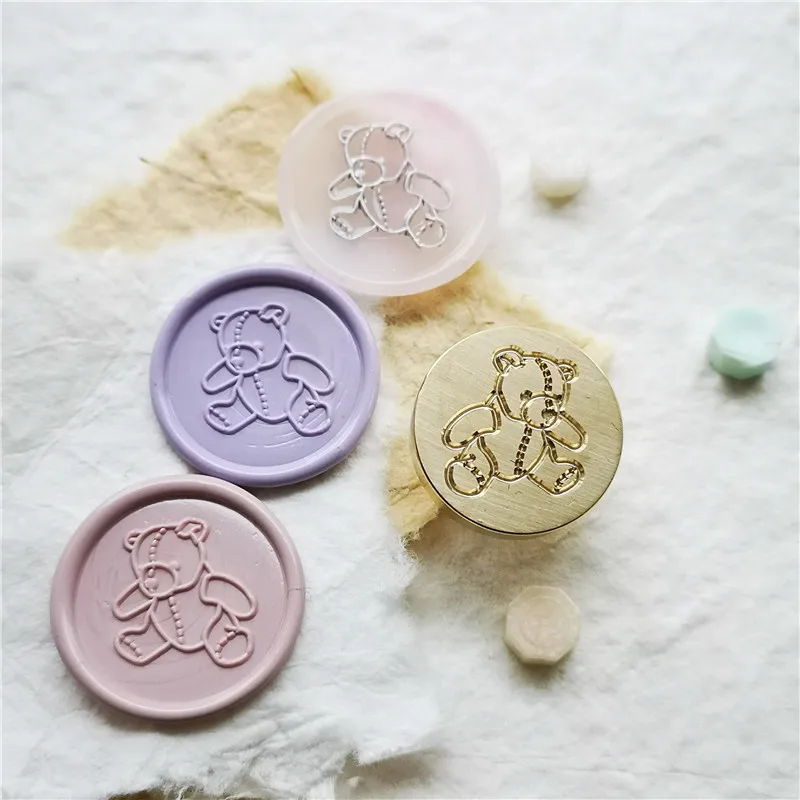 Медведь Вощеная печать штамп 2,5 см Милые мишки штамп металлическая головка деревянная ручка отдельно от покупки для скрапбукинга, для воска штамп винтажный подарок