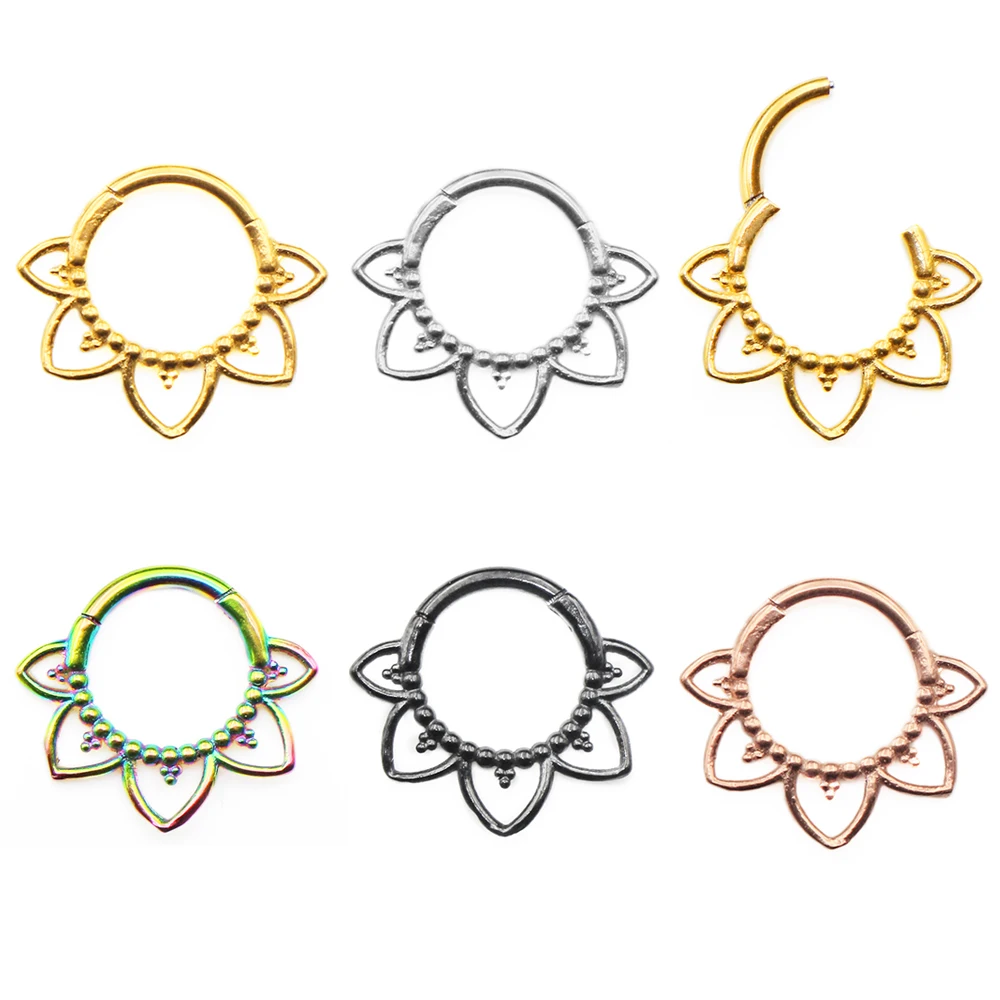 Кольцо для носа в форме цветка, перегородка, кликер, завитка Helix, быстрое кольцо для пирсинга тела для женщин и мужчин, хирургическая сталь 316L
