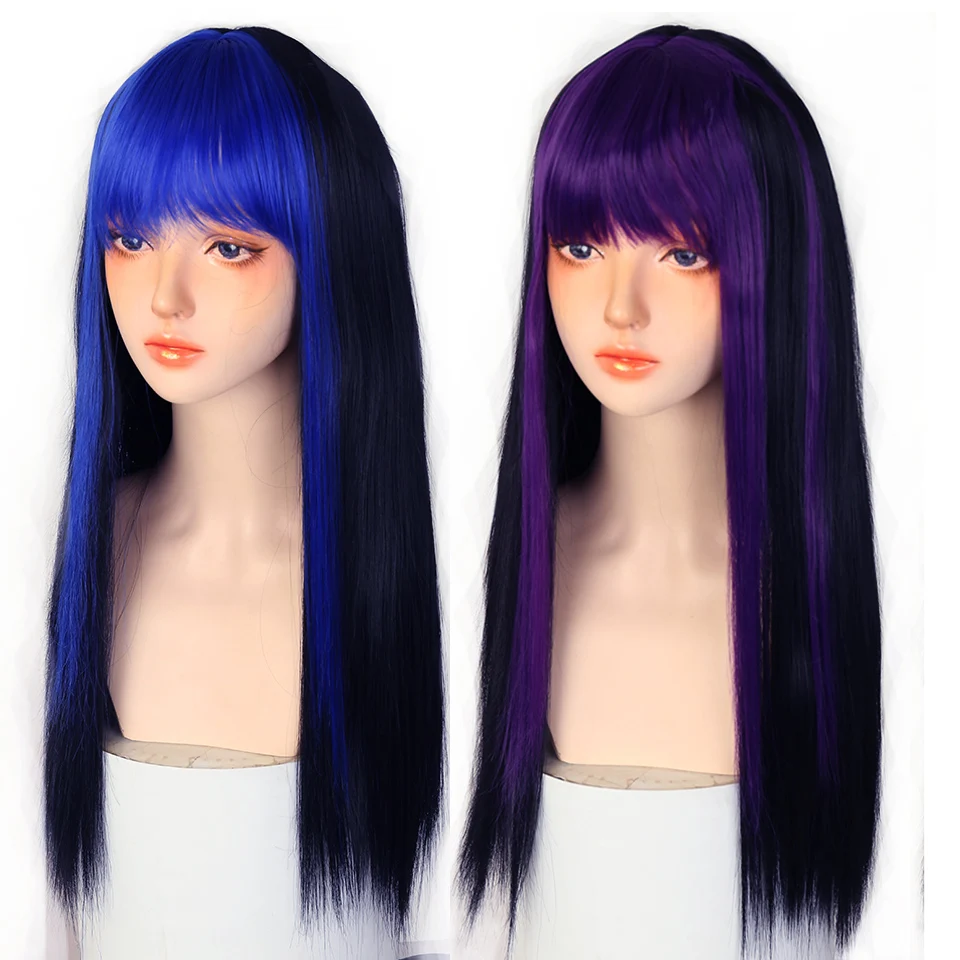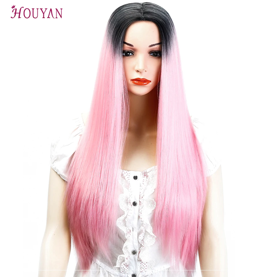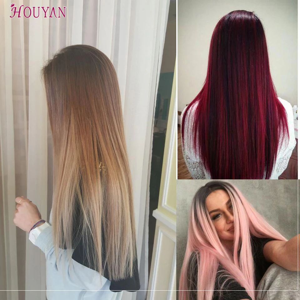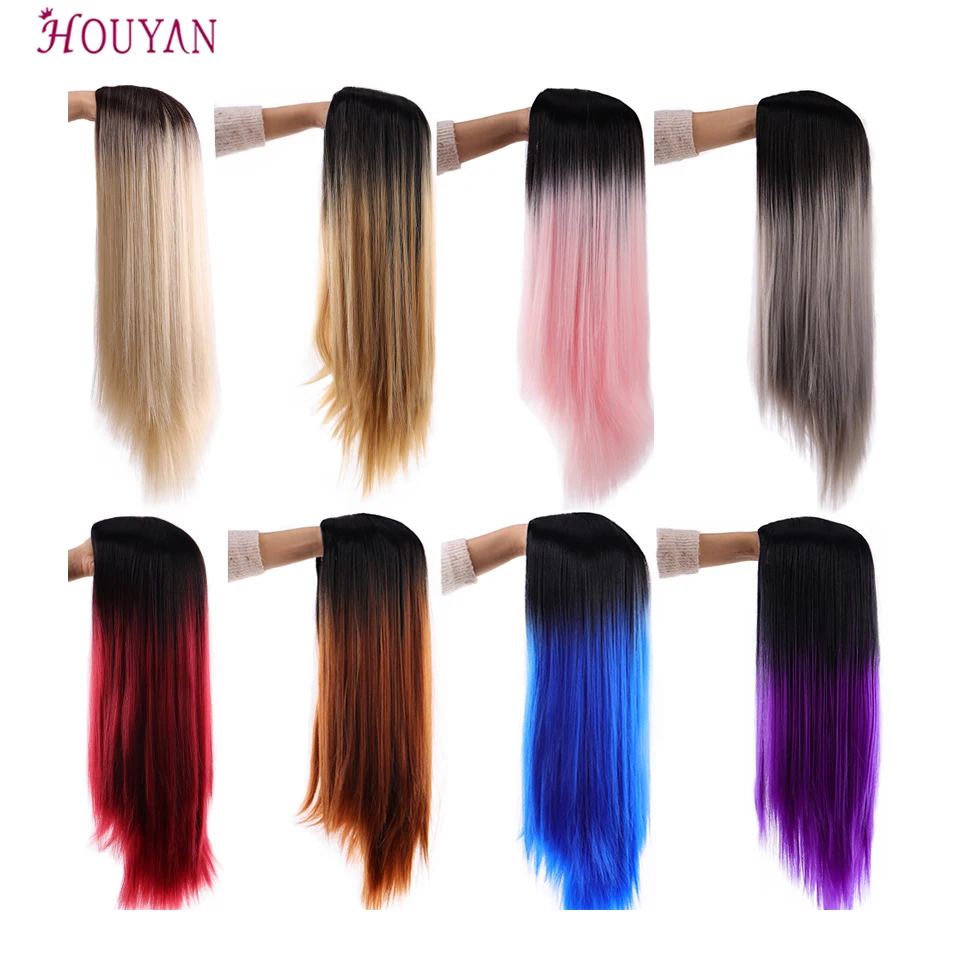 Парик HOUYAN из окрашенных длинных прямых волос с золотистой челкой, Женский термостойкий синтетический парик с естественным градиентом цвета