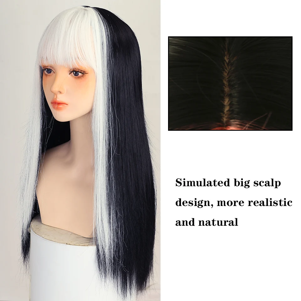La peluca es hermosa!!! Tiene muy buena cantidad de cabello, es de red de encaje y viene con simulación raíz al centro y con un lacio increíble!!! El único detalle es que de un lado el mechón blanco es más delgado, pero sigue siendo increíble, la súper recomiendo. El envío fue muy rápido, llegó en 9 días!! Muchas gracias!!