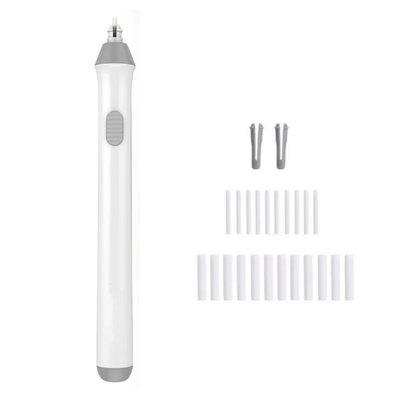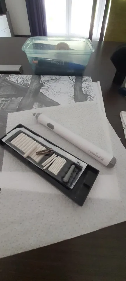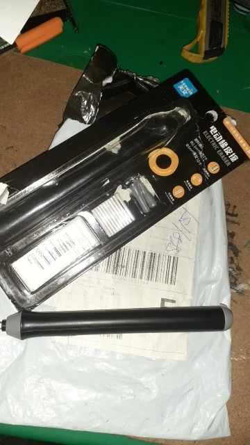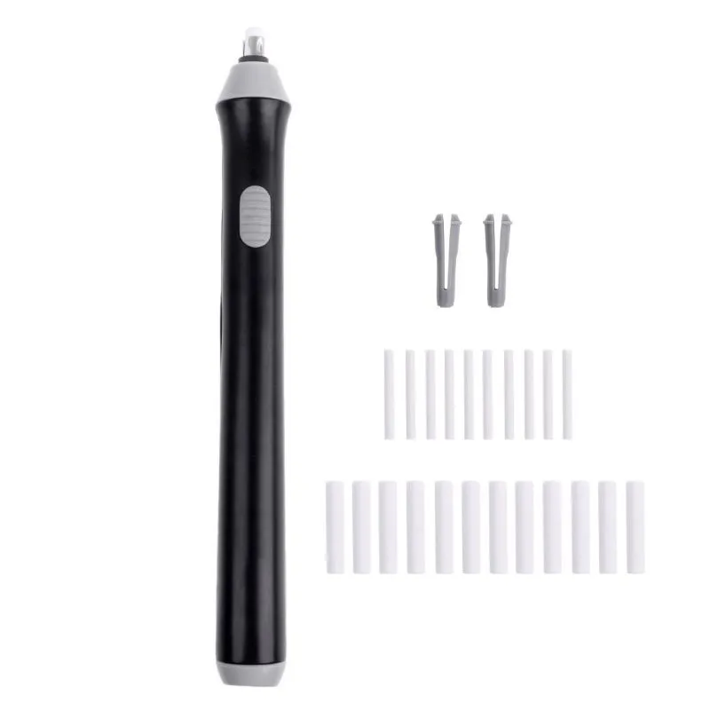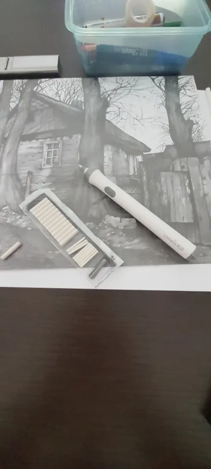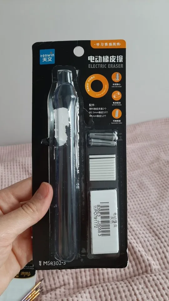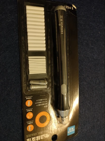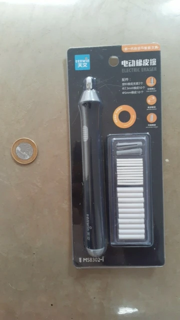 • Ручка с среднего размера 16,5 см (без резинки) могут пройти какие-либо мм 17 в тех случаях, когда в сочетании с резиновой подошве €¢ работает на две батарейки 3A (ААА) • Поставляется с 21 каучуков 10 диаметр 2,3 мм и 11 от 5 мм плюс (В том числе следующий элемент типа фломастера) • Кнопка должны быть легко нажимаются для использования, чем-то сенсорный экран, так что не беспокоить обработки • Ручка ножа рифленая не очень громко, но ее объем составляет больше в тех случаях, когда есть с резиновым контактом на бумагу, не является неудобным для слуха • Имеет прочную и прочного материала, удобно лежит в руке, так же может быть странно, так как это намного теплее обычных карандаш (диаметр около 2 см) • Поставляется с двумя кронштейнами Пластиковые Резины 2,3 мм и металлической (упругая, следует взять немного осторожны, чтобы не сгибать) для резиновой 5 мм (Картинку, чтобы продемонстрировать эффективность продукции в практичный карандаш используется: шариковая ручка, эко-карандаш от Faber Castell и 4B карандаш от Faber Castell)