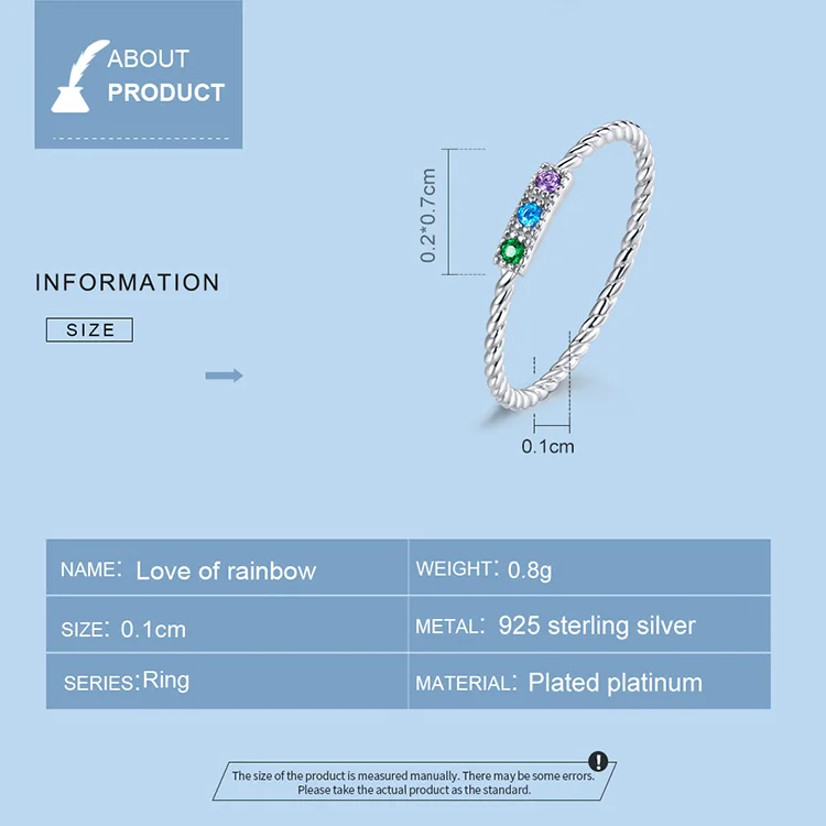 Женское кольцо из серебра 925 пробы с радужной любовью, разноцветно...