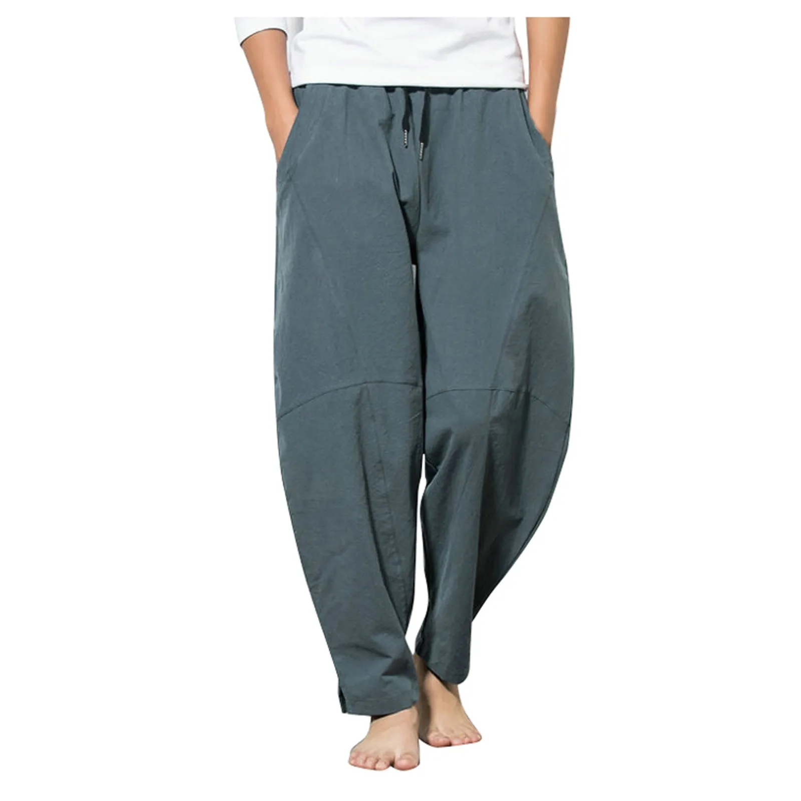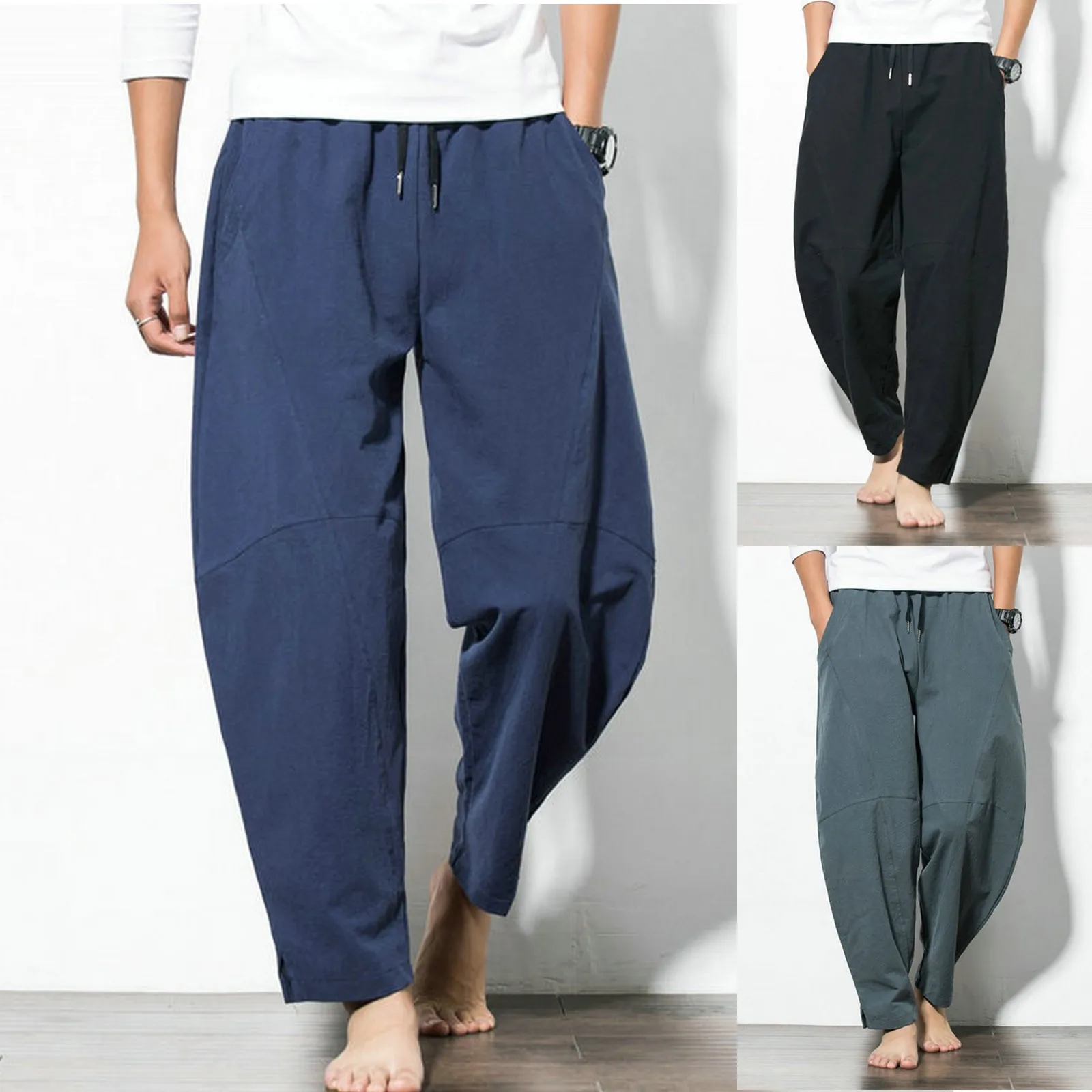 Мужские брюки со шнурком, однотонные повседневные свободные брюки со средней талией, с эластичной резинкой на талии, уличный сверхразмерный