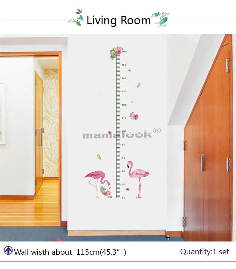 Забавный Фламинго диаграмма роста наклейки на стену спальни домашни...