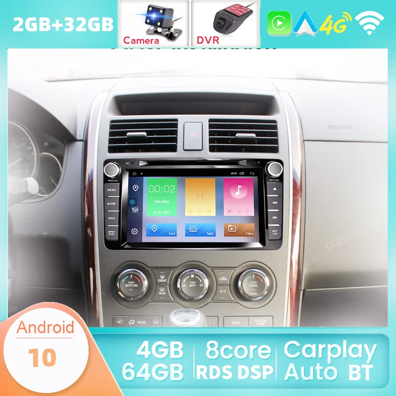 Автомобильный DVD-плеер, 8 дюймов, 1024*600P, 2 Гб ОЗУ + 32 Гб ПЗУ, Android 10,0, для Mazda CX-9 CX9 CX 9 2007-2015, радио, GPS, DSP, Android, Автоматический встроенный Carplay