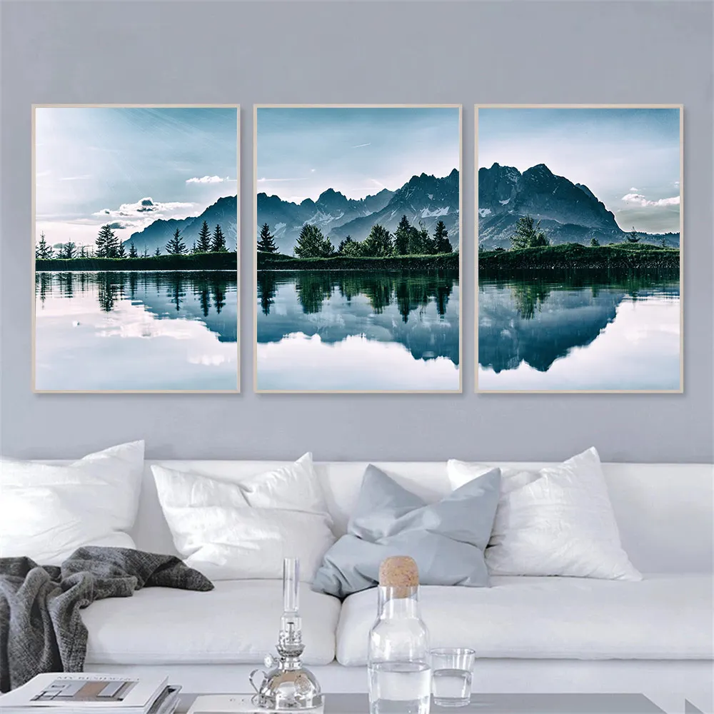 Настенный постер на холсте с изображением природного пейзажа, Настенная картина с изображением гор и озер в скандинавском стиле, декор для гостиной и дома