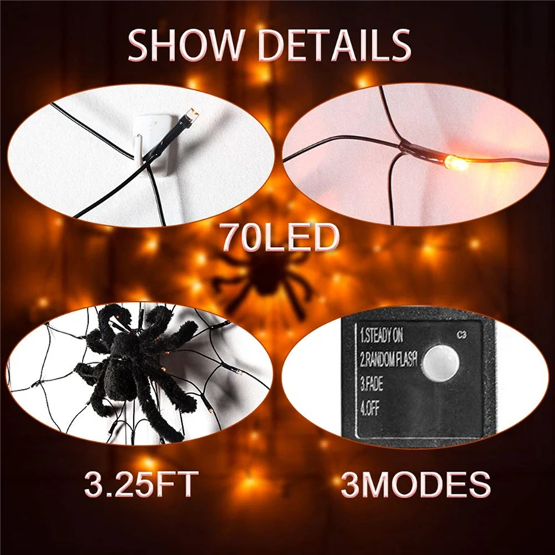 2021 Хэллоуин СВЕТОДИОДНАЯ пауковая паутина светильник дистанционны...
