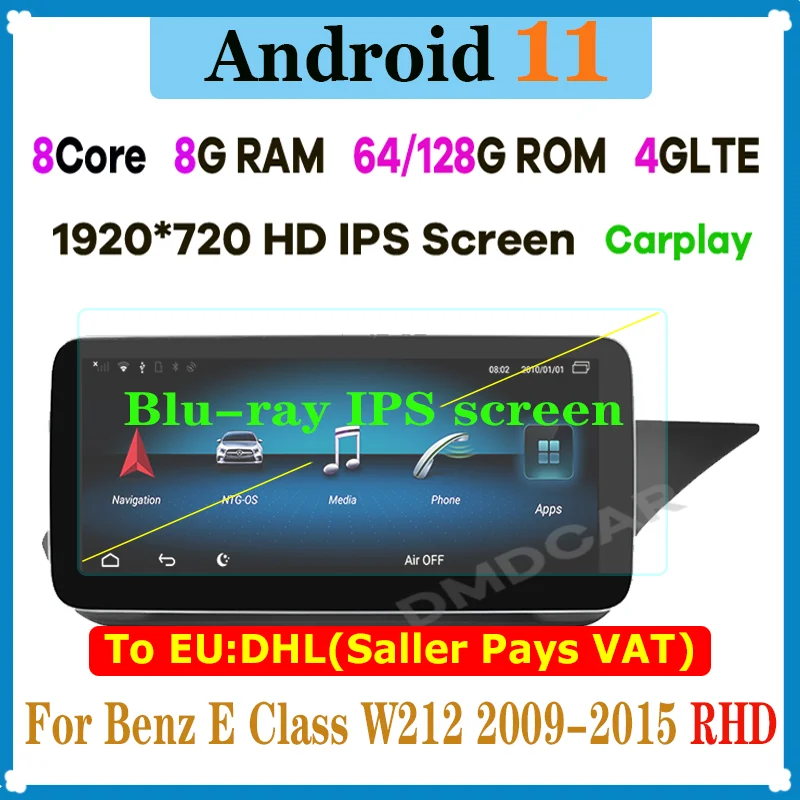 Мультимедийный плеер на Android 11, 8-ядерный процессор, экран 12,5 дюйма, 8 ГБ + 64 Гб128 ГБ, GPS навигация, для автомобилей Mercedes Benz E Class W212 2009-2015 RHD