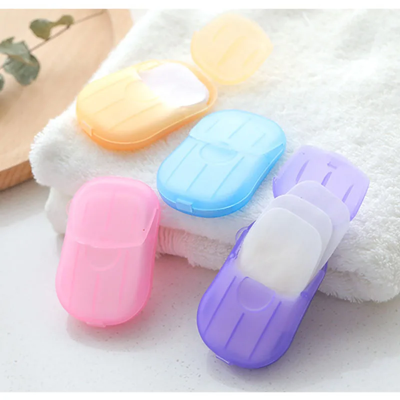 1 @ # мыльная бумага для путешествий на открытом воздухе, мытье рук, ванночка, чистые ароматизированные ломтики, листы 20 шт., одноразовое мыло для бокса, портативное бумажное мини-мыло