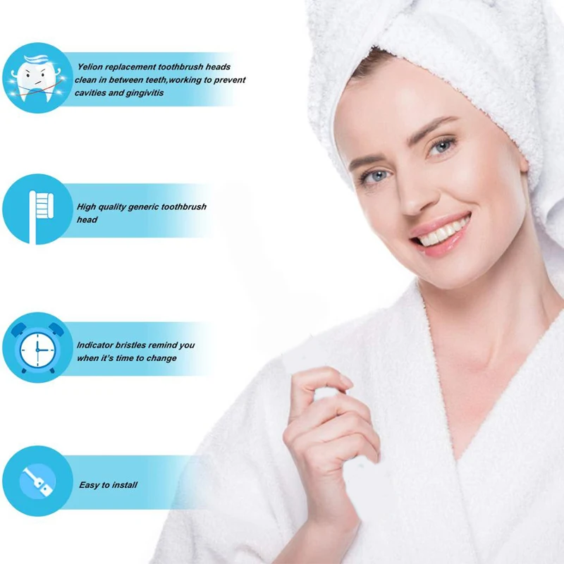PS: подходит для Oral B Особенности:1. Мягкие щетинки DuPont, подходят для чувствительных зубов2. Ультразвуковая электрическая зубная щетка может эффективно удалять зубной налет и уменьшать некроз десны.3. Принять DuPont American tynex классические щетинки 0,152 мм. Мягкие щетинки, мягко к вашим зубам.Диаметр наконечника щетины 4.0.01 мм, Глубокая очистка зазора между зубами5. Щетка одобрена FDA и УФ стерилизована.6. Герметичная упаковка, более безопасная в использовании.7. Пожалуйста, заменяйте головки зубной щетки каждые 3 месяца8. Если у вас есть какие-либо вопросы о модели зубной щетки, вы можете проконсультироваться со службой поддержки клиентов. Спасибо. Герметичная упаковка