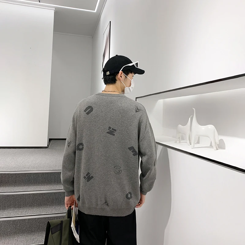 Мужской свободный свитер с круглым вырезом, повседневный пуловер с ...
