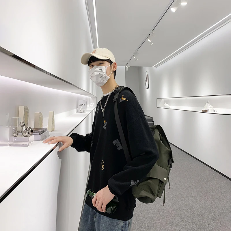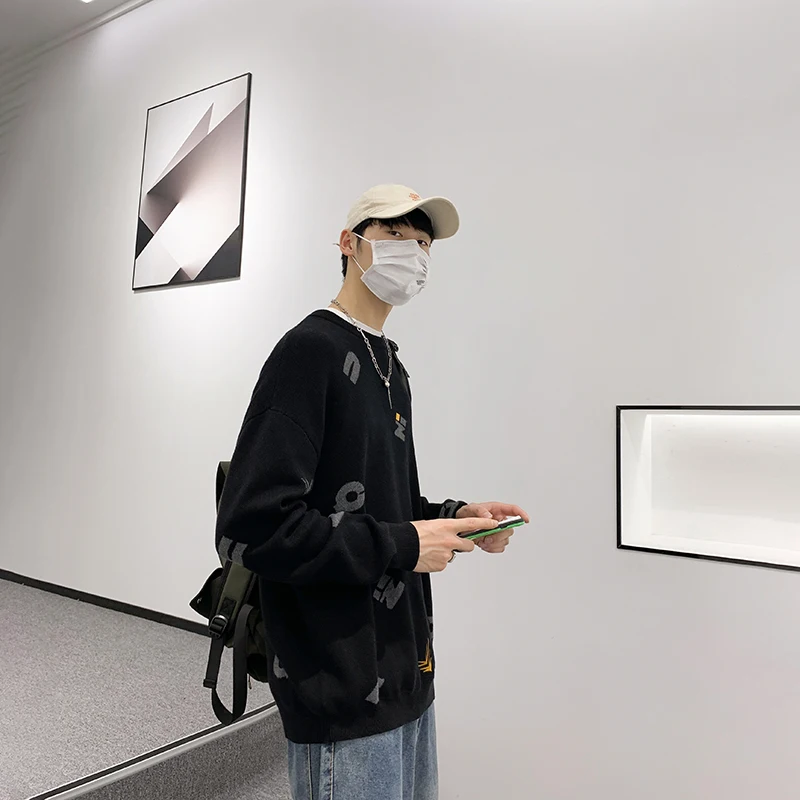 Свободный свитер, Мужской Повседневный пуловер в стиле Харадзюку, О...