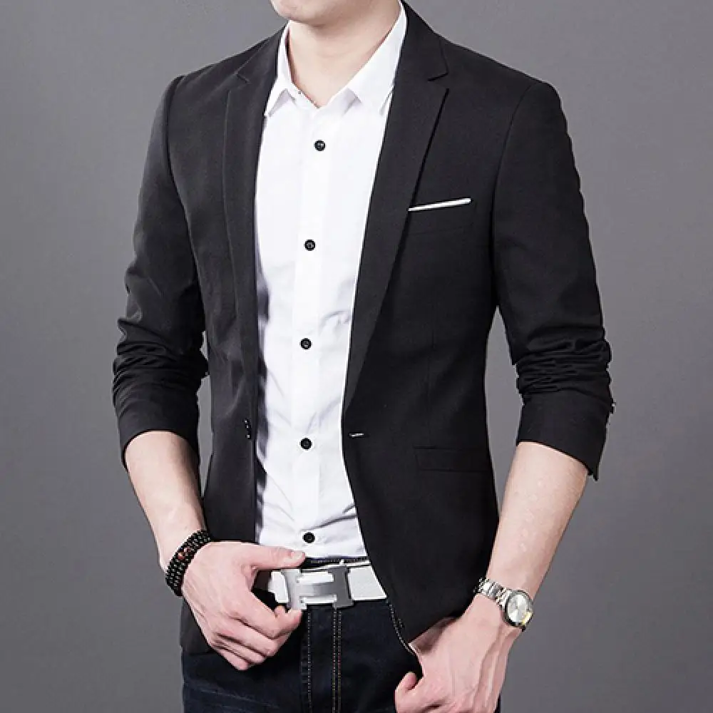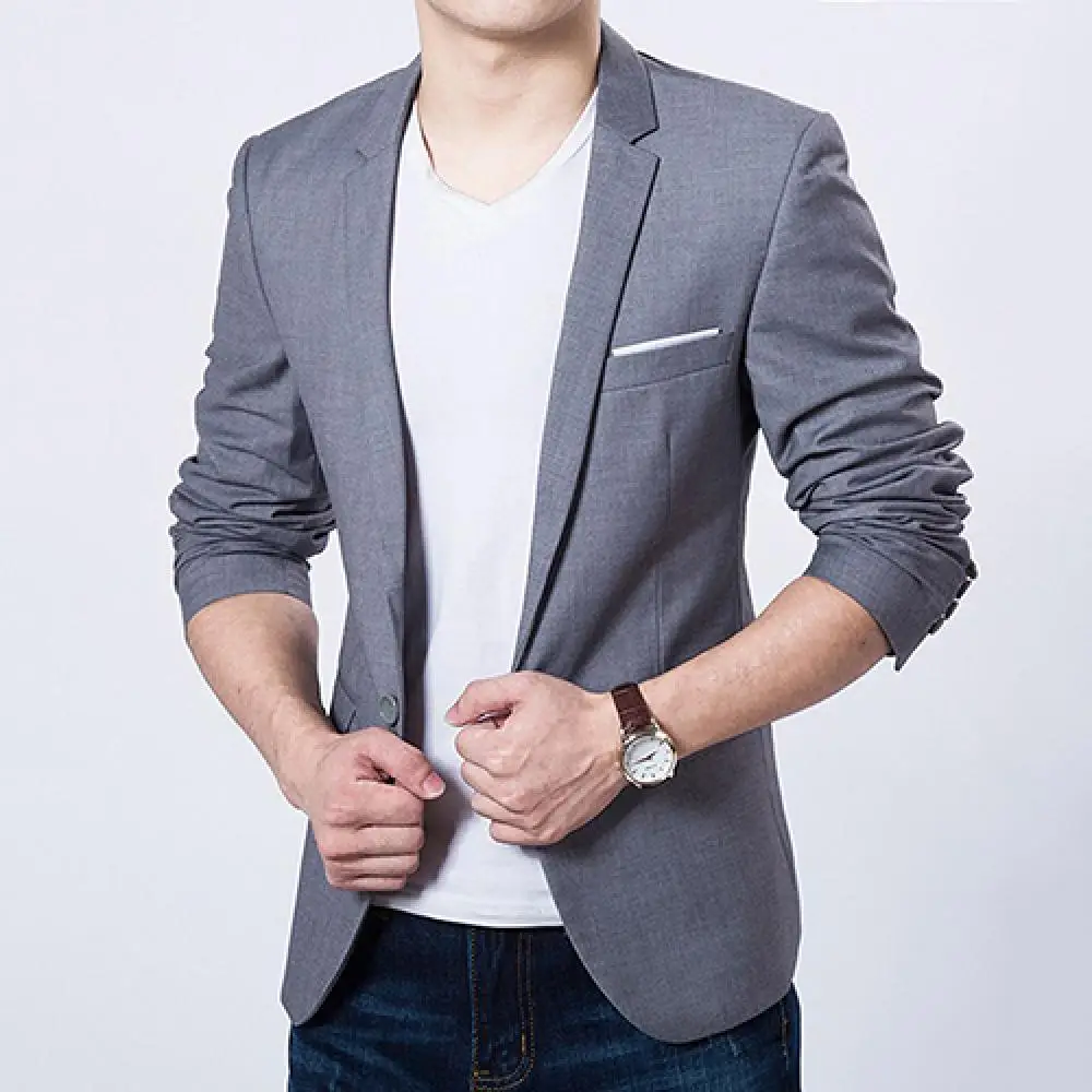 Мужской Блейзер, повседневный приталенный Блейзер на одной пуговице...