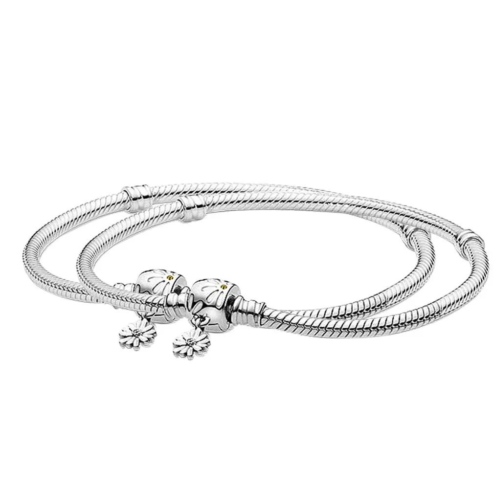 Женский серебряный браслет-талисман, серебряный браслет из стерлингового серебра 925 пробы с Т-образной застежкой и блестящим голубым диском, змеиная цепочка, ювелирные украшения
