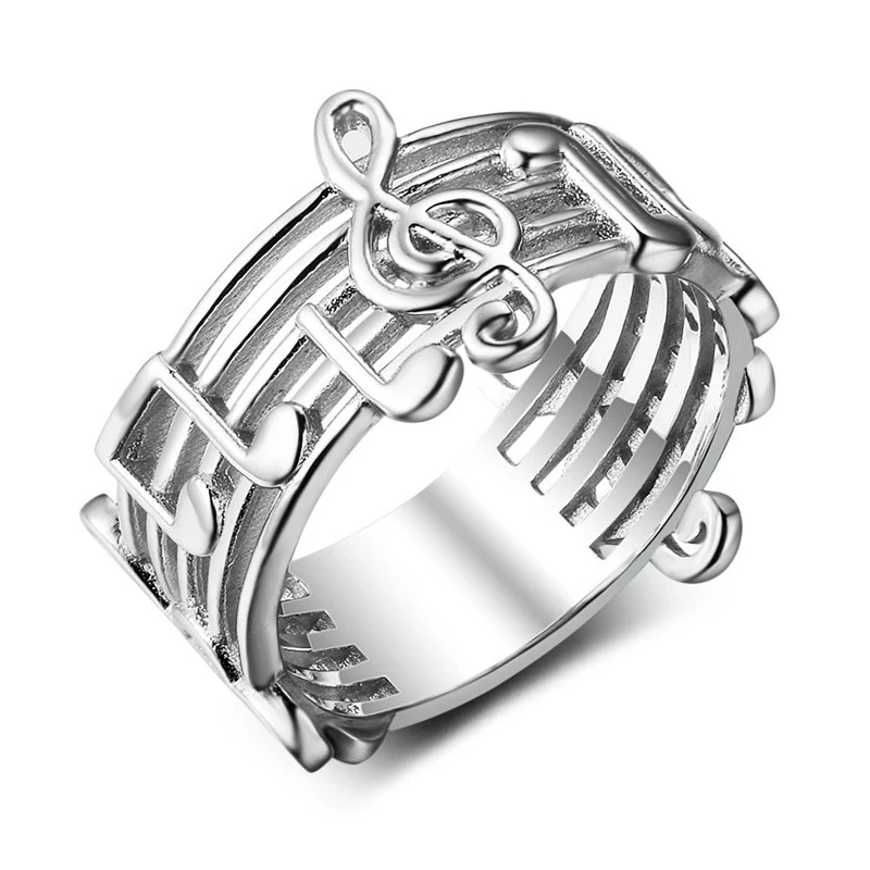 Новые Кольца серебряного цвета для женщин с узором в виде музыкальн...