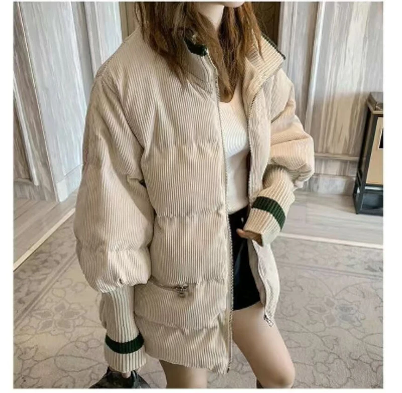 Вельветовая куртка с хлопковой подкладкой, Женская свободная зимняя уличная одежда, зимнее теплое пальто с хлопковой подкладкой, зимнее белое зимнее пальто