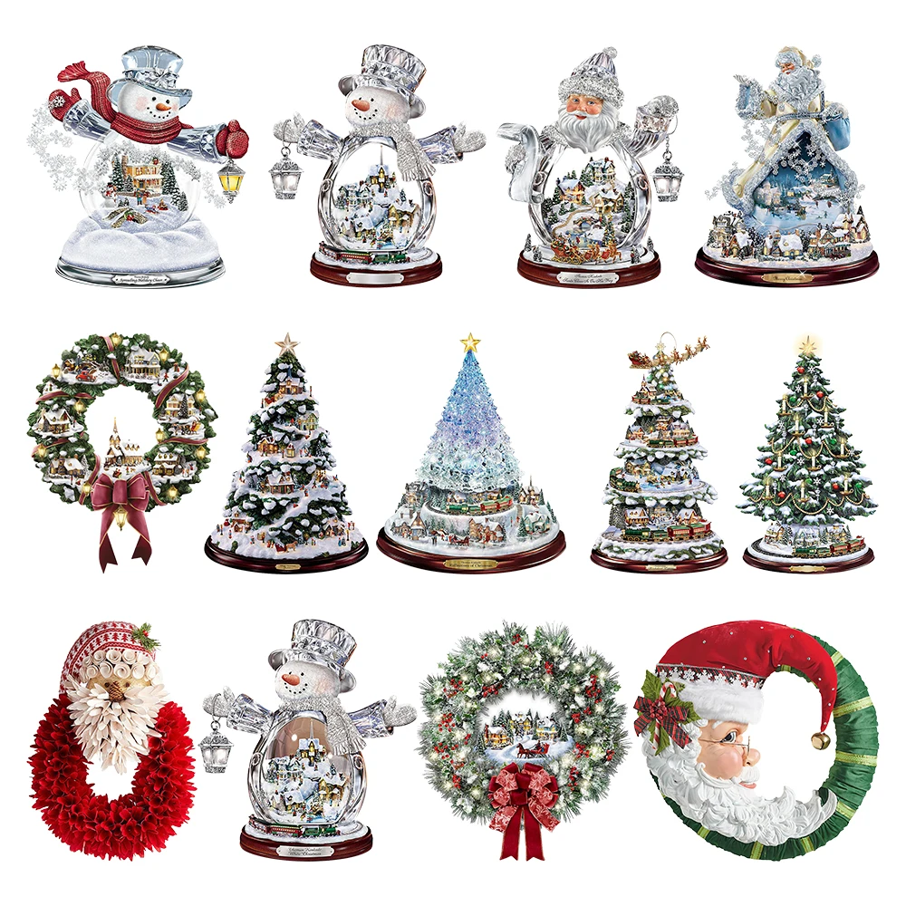 3D наклейки в виде рождественской деревни, наклейки в виде снеговик...