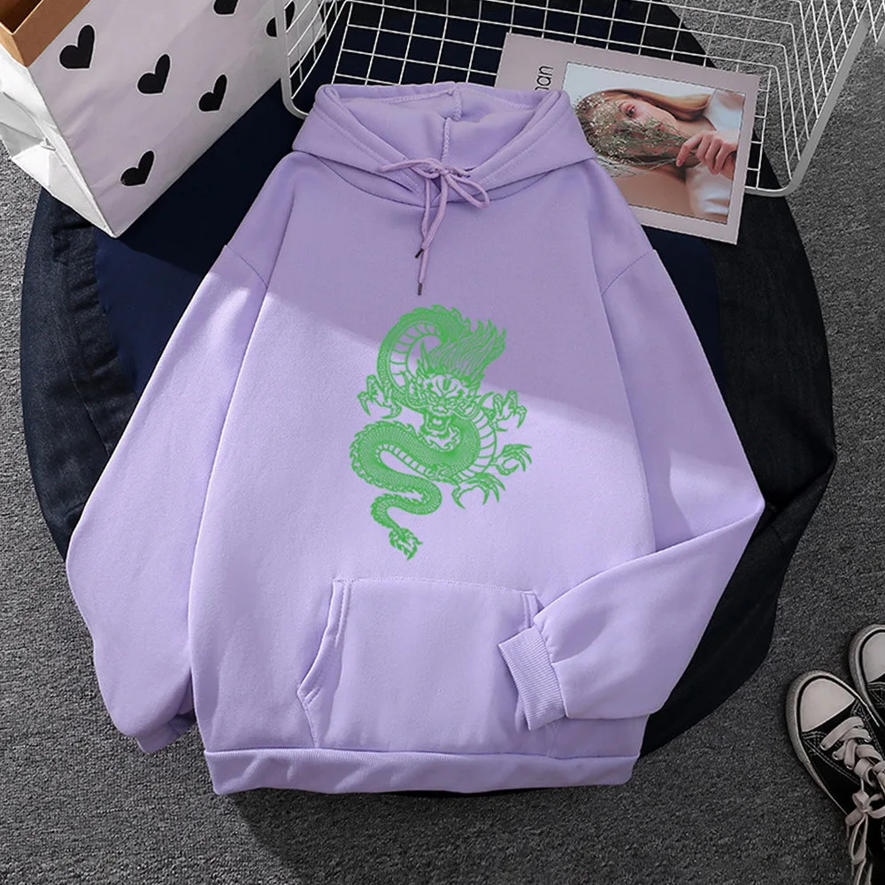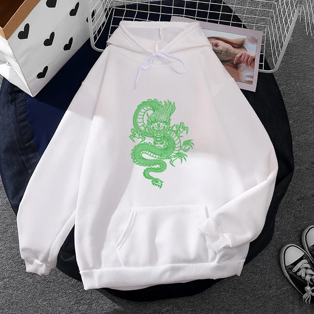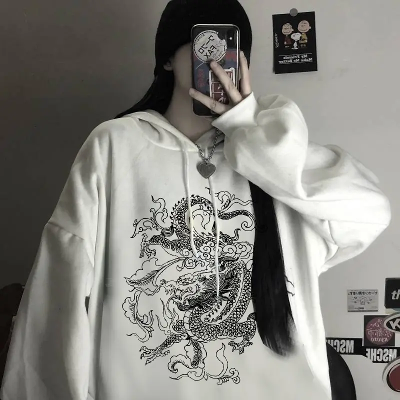 Женская толстовка с капюшоном и принтом дракона, в стиле Харадзюку
