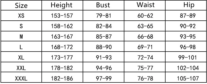 * Пожалуйста, выберите размер в соответствии со следующей таблицей. Если вы не уверены в своем размере, пожалуйста, свяжитесь со службой поддержки клиентов. Спасибо!