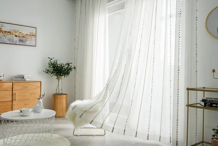 Шторы с вышивкой в скандинавском стиле, прозрачные Занавески для го...