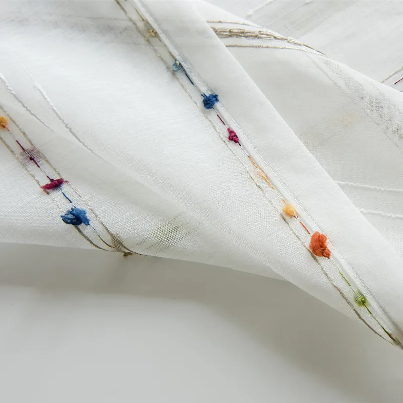 Белые полосатые занавески из искусственного льна, занавески с вышив...