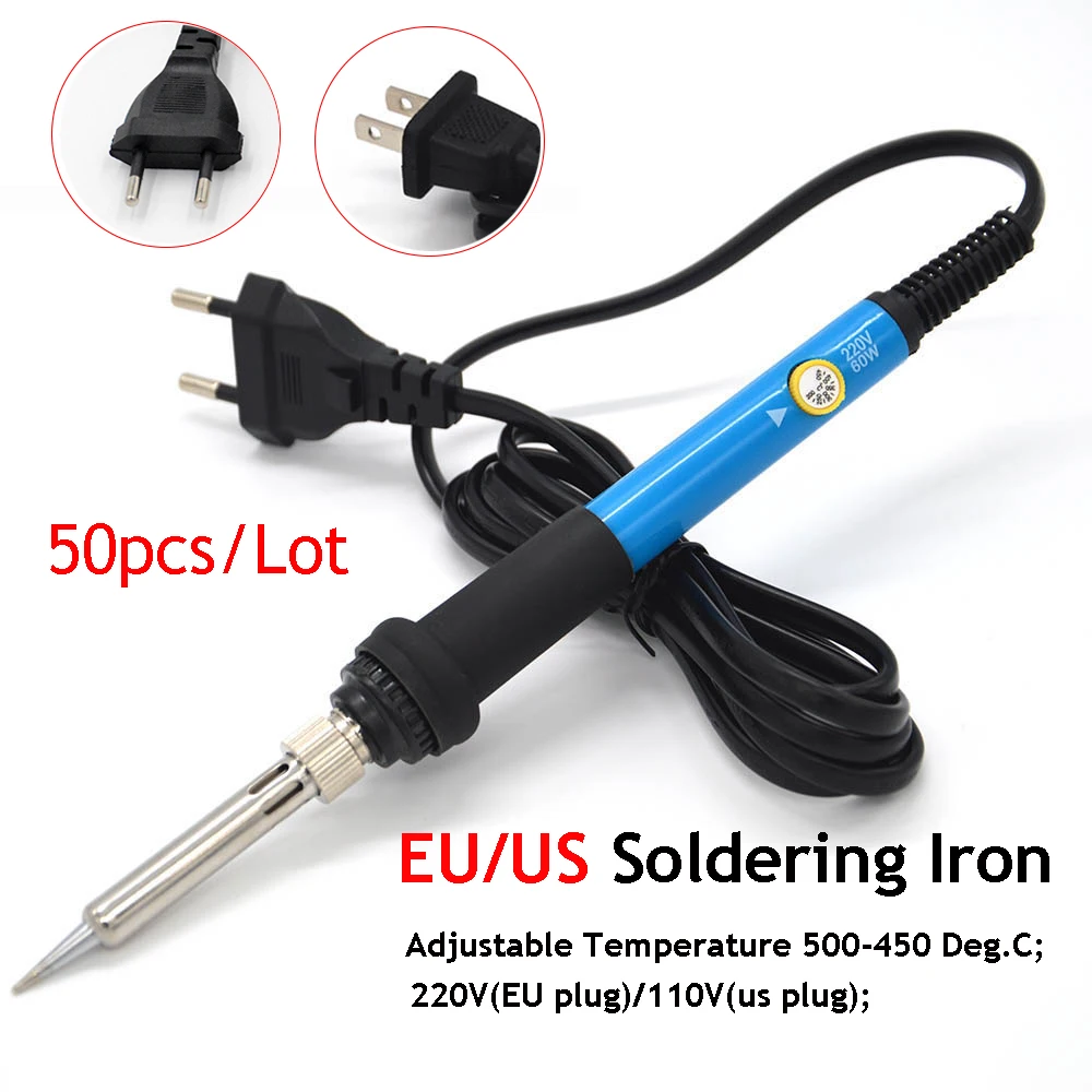 Оптовая продажа, 50 шт.лот паяльник 220 В110 В, вилка для ЕССША, 60 Вт, Синий Электрический паяльник с регулируемой температурой для магазина инструментов, распродажа