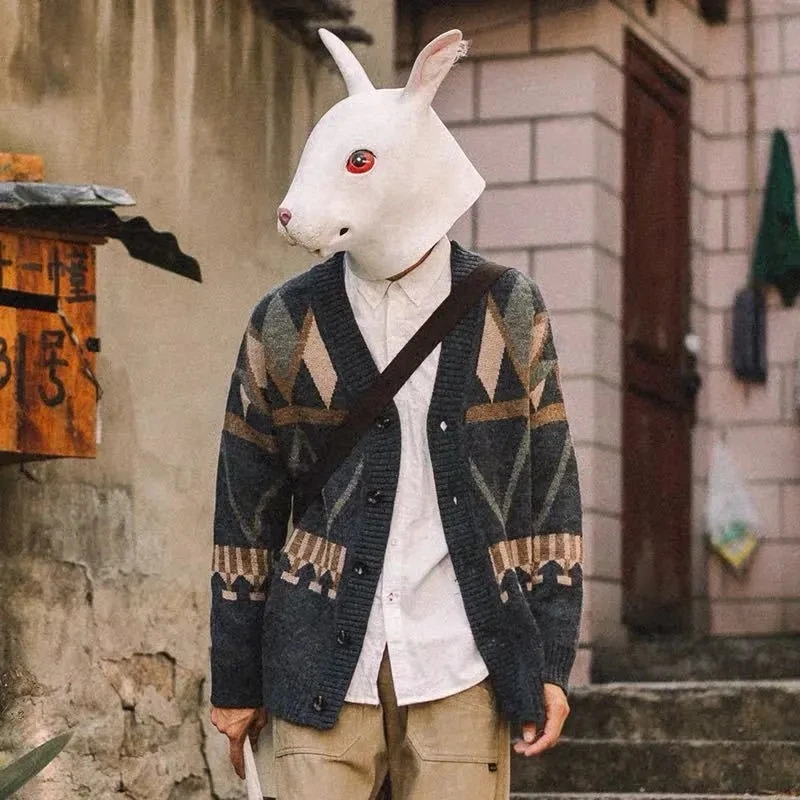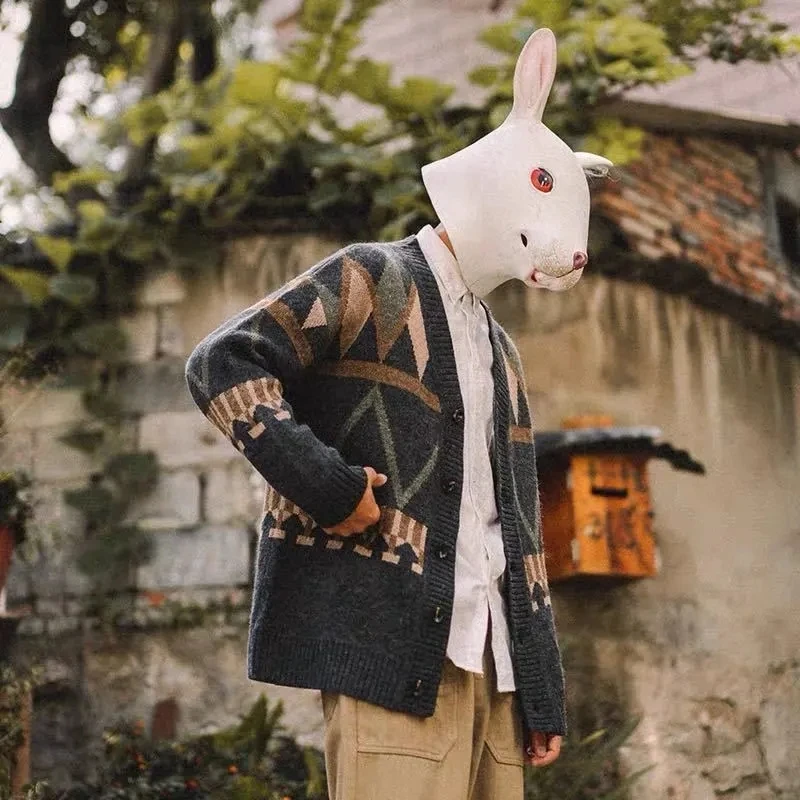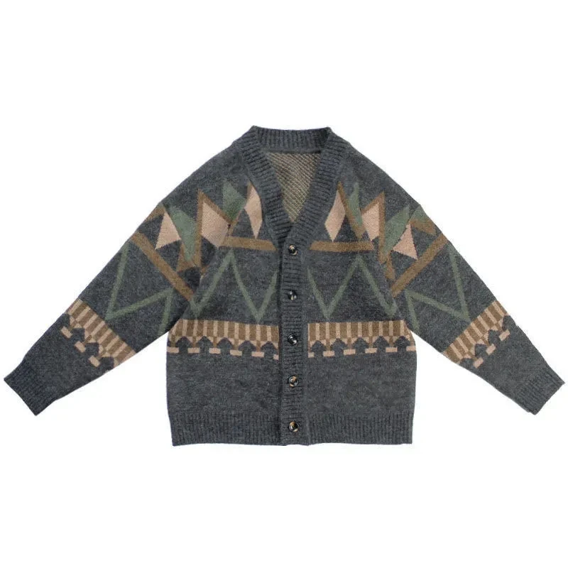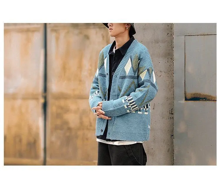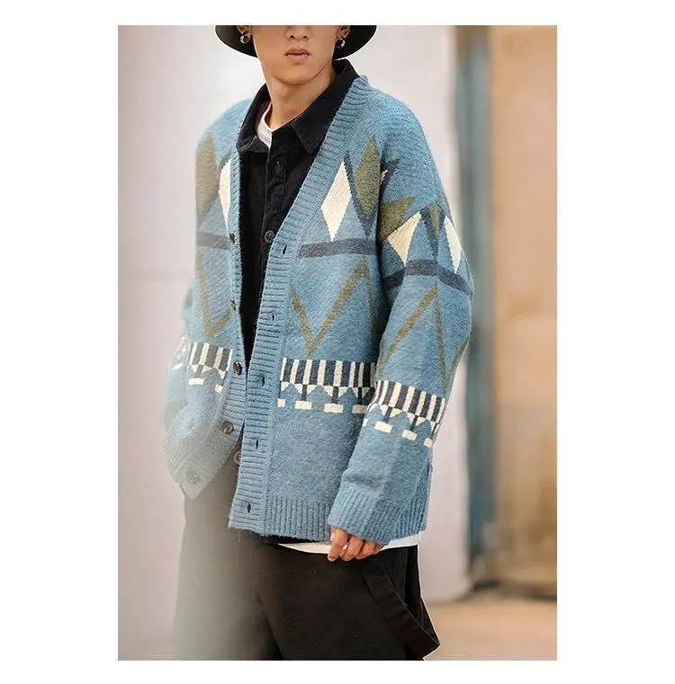 Мужской Жаккардовый кардиган с V-образным вырезом, в стиле ретро