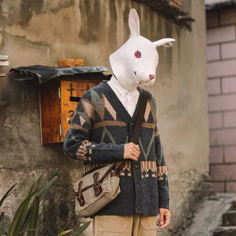 Мужской Жаккардовый свитер с V-образным вырезом, в японском стиле р...