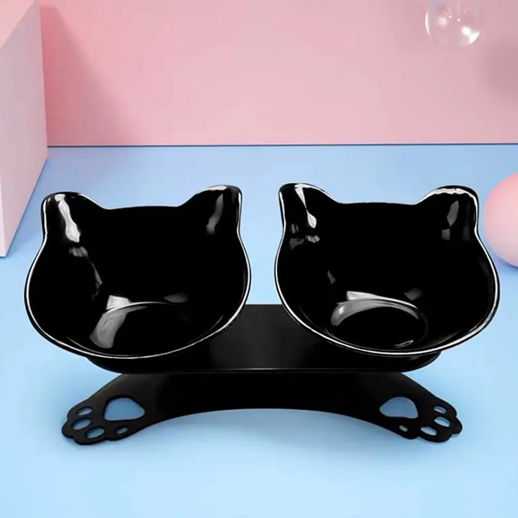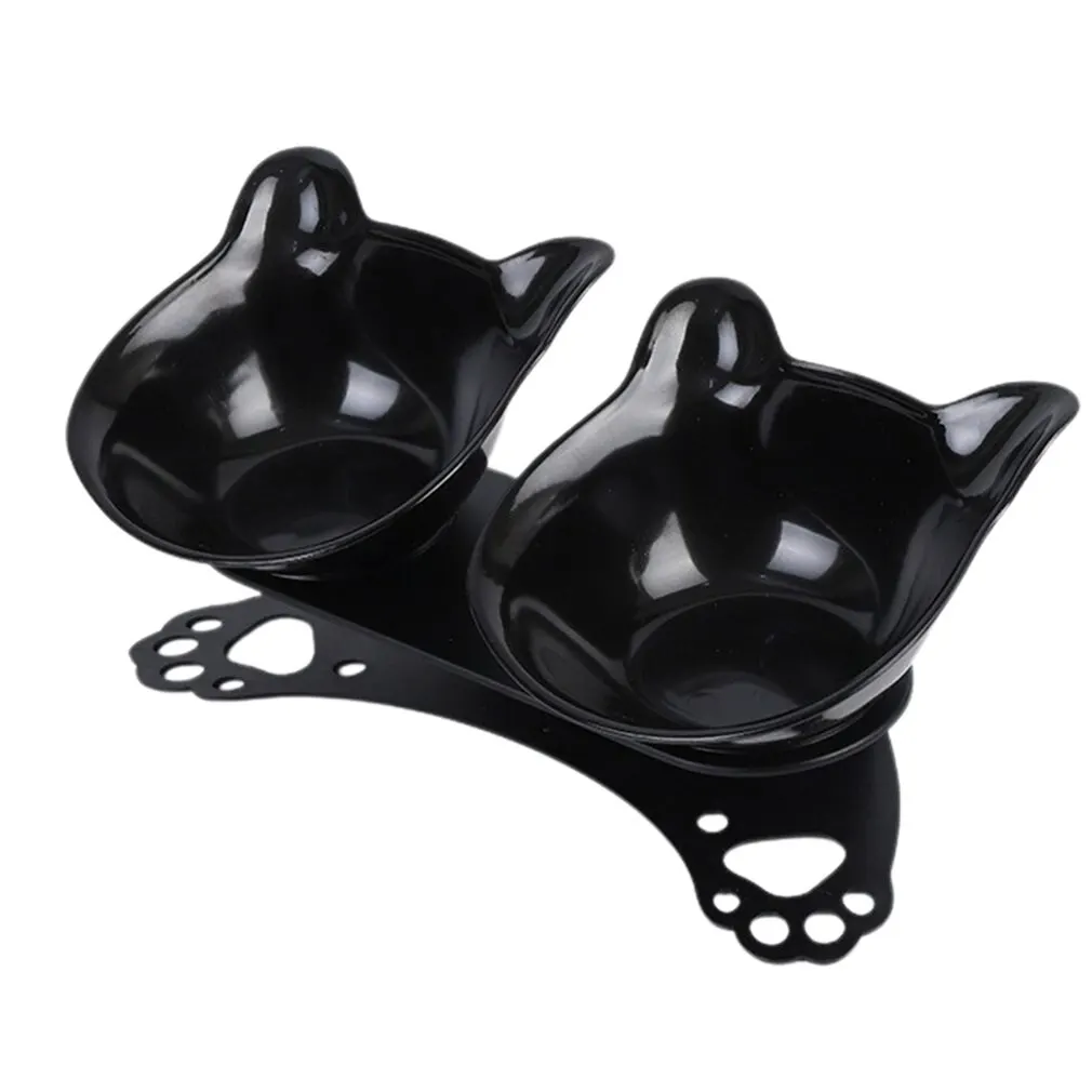 Двойная миска для кошек и собак, двойные пластиковые миски с нескользящей резиновой основой и наклоном на 15 для защиты шейного отдела позвоночника