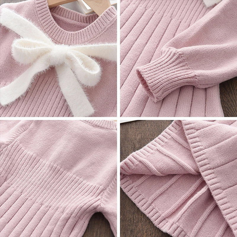 Melarioрождественское трикотажное платье-свитер для маленьких девочек; Сезон осень-зима; Плотное теплое платье-свитер с бантом; Платья для девочек; Вязаная одежда для девочек