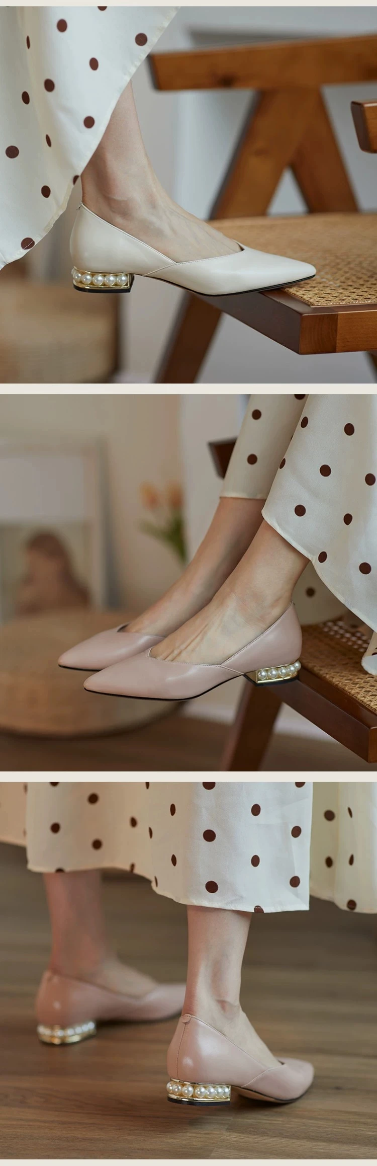 Туфли женские с жемчугом, плоская подошва, заостренный носок, однотонные, без застежки, балетки, осень 2021
