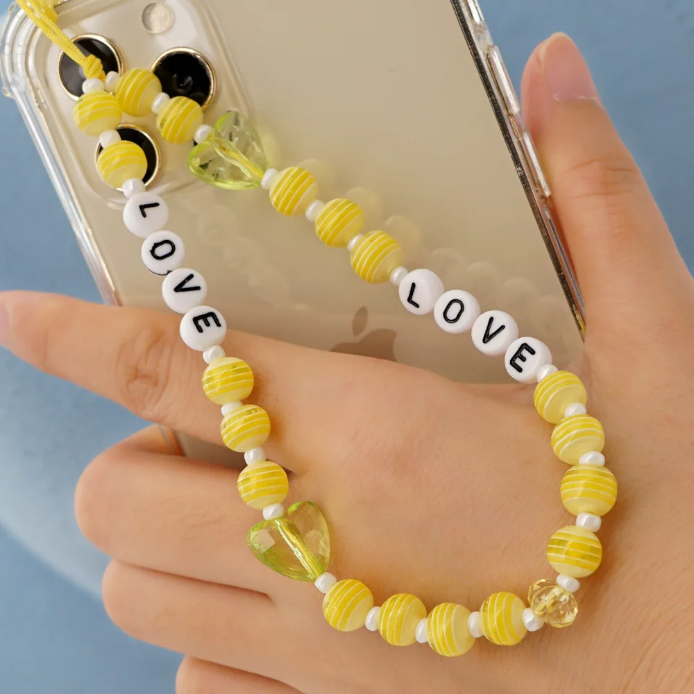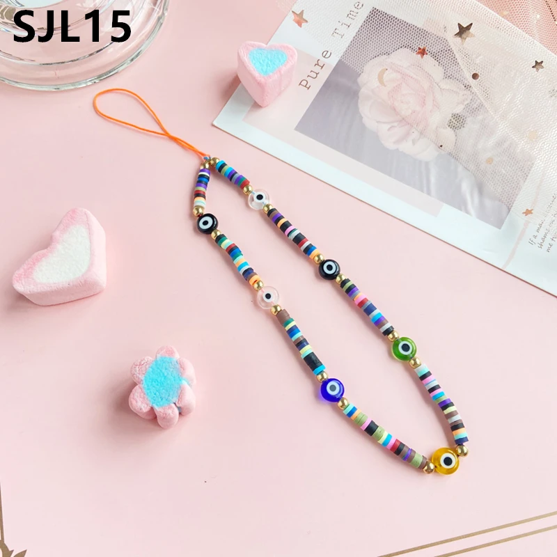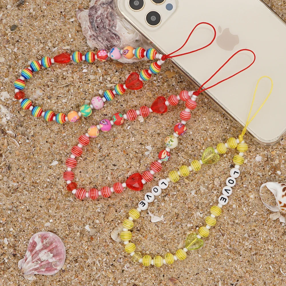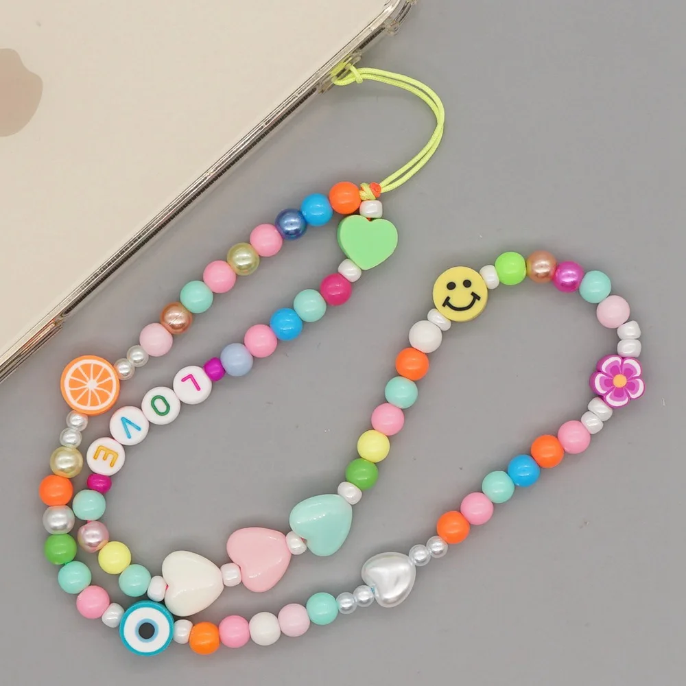 Цветные акриловые бусины kissme, смайлик, злые глаза, женский ремешок для мобильного телефона, ремешок против потери, модные аксессуары