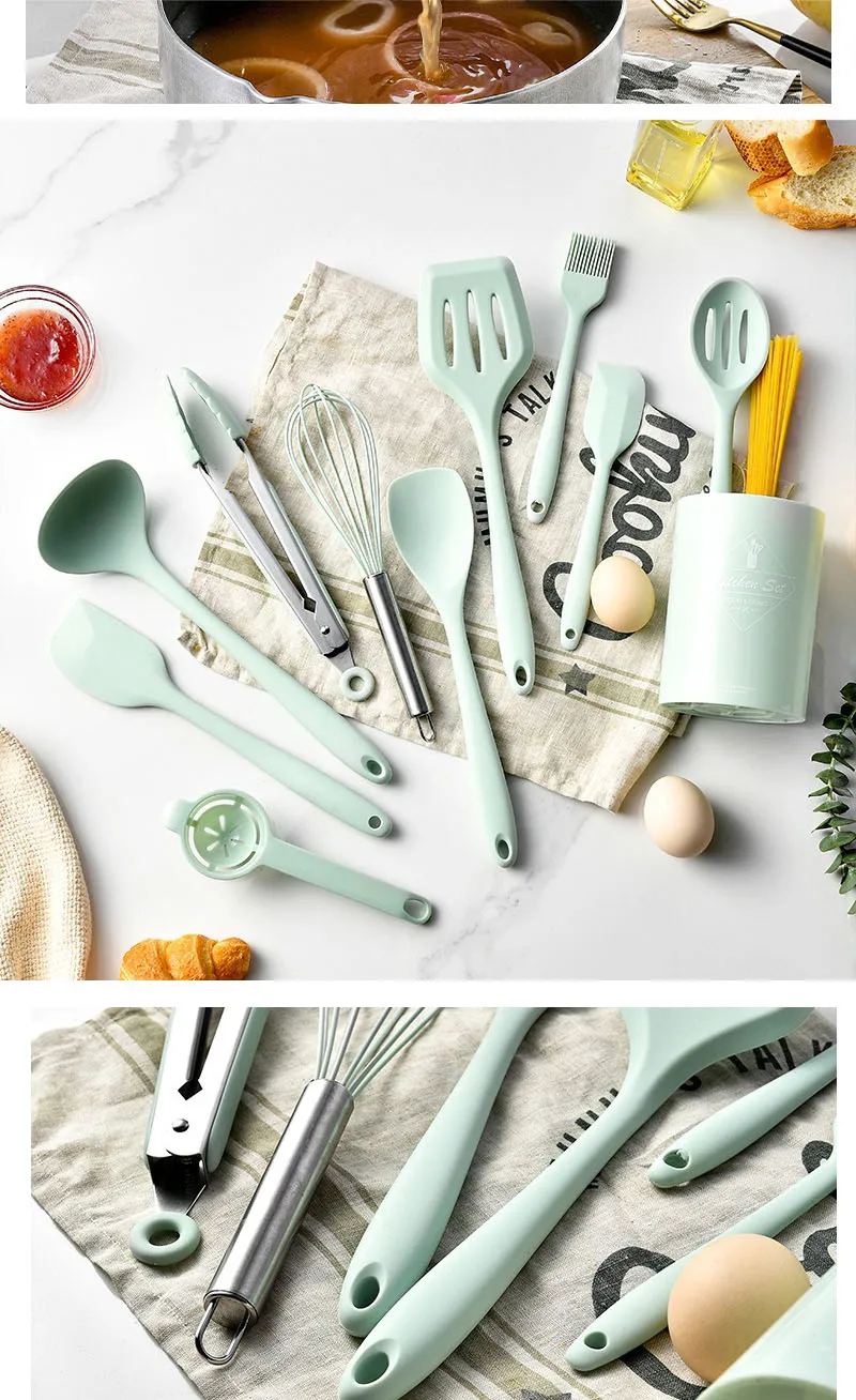 Набор Кухонной силиконовой посуды Zoseil, 12 предметов, антипригарная посуда, легкая Лопата для чистки ложка, столовая посуда, набор инструментов для приготовления пищи