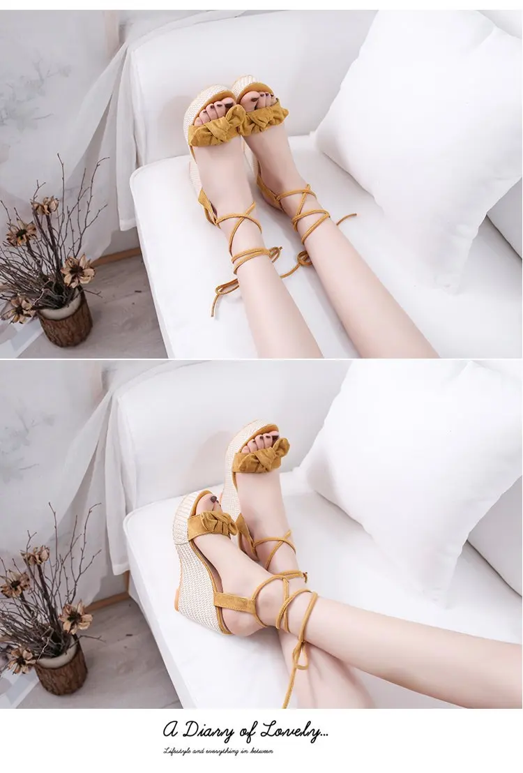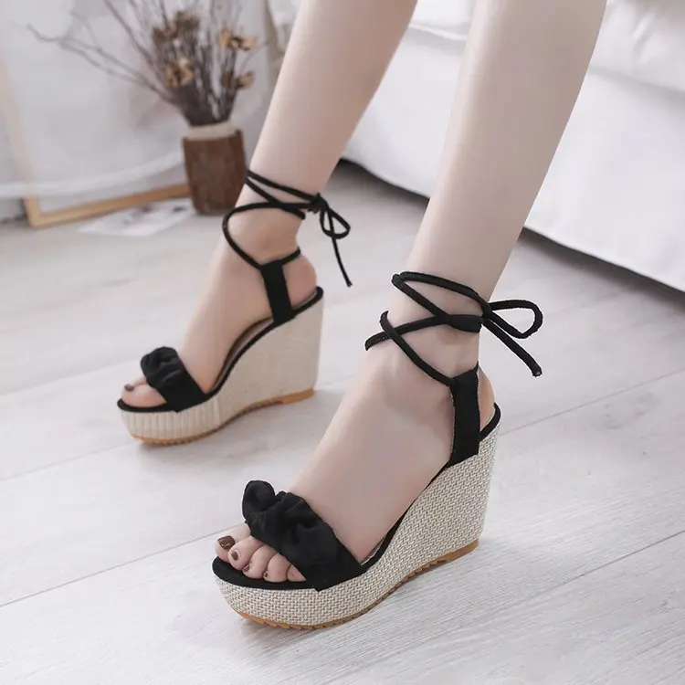 Сандалии женские на платформе с открытым носком, босоножки на танкетке, обувь для увеличения роста, лето