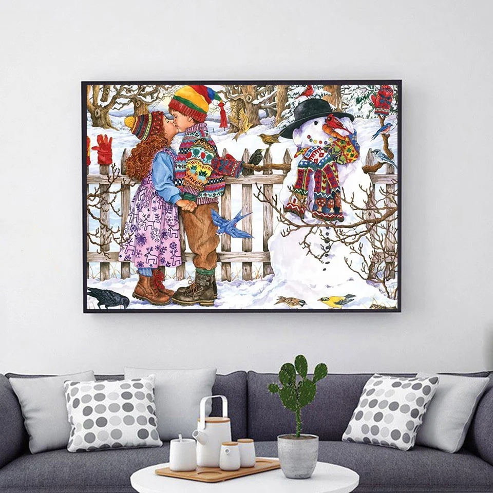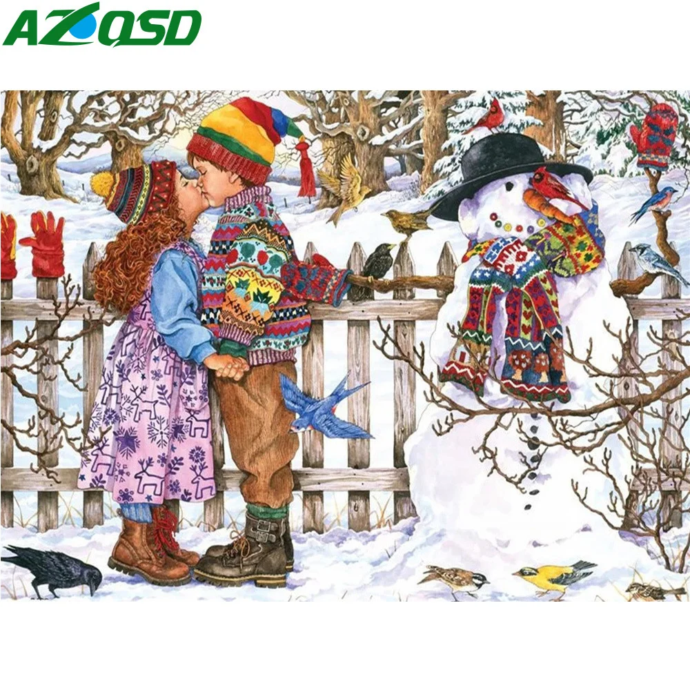 AZQSD зимняя Алмазная мозаика, парные кресты, стразы 5d, сделай сам, алмазная живопись, Детская осенняя вышивка, распродажа, снеговик