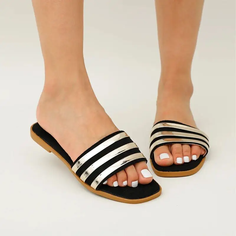 Женские шлепанцы, Пляжная летняя обувь, новинка 2021, женская обувь, блестящие шлепанцы на плоской подошве, Уличная обувь, женские повседневные сандалии