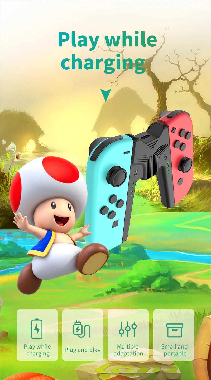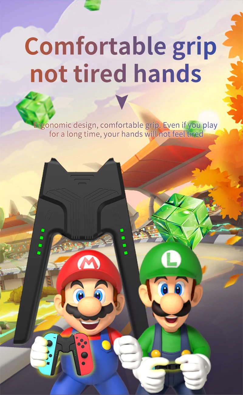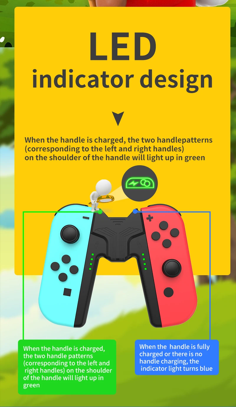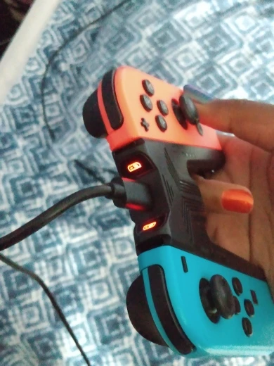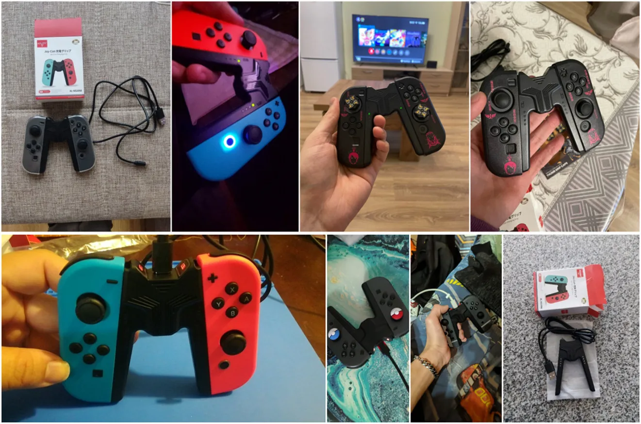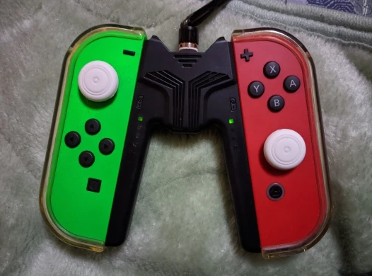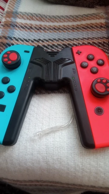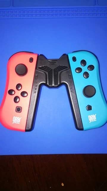 Я попробовал только один из трех, и он работает хорошо, красный свет указывает, что он заряжается, и когда он становится зеленым, он заряжен (свет для каждого joy-con), сцепление более удобно, чем оригинальный захват