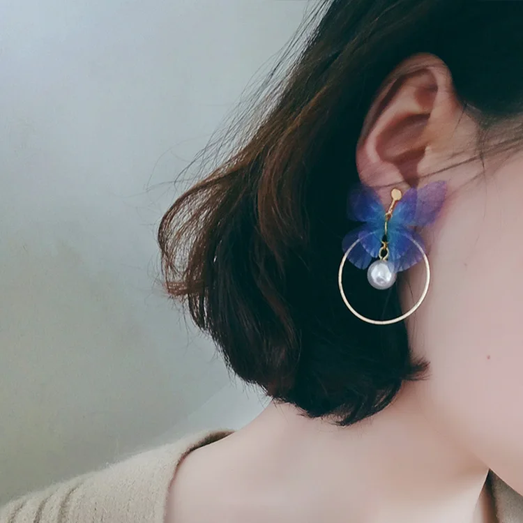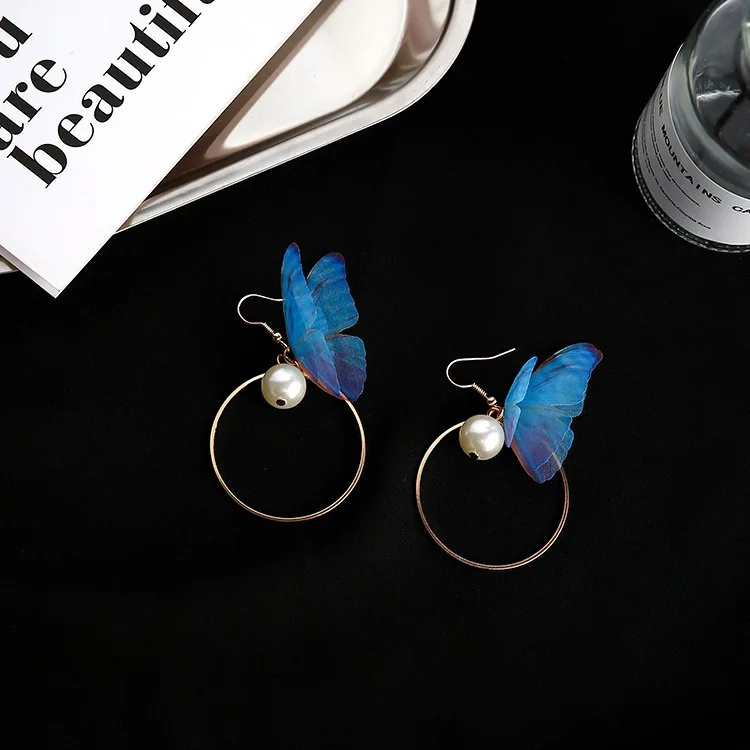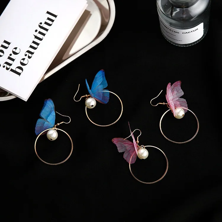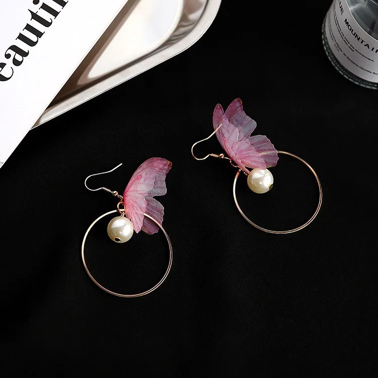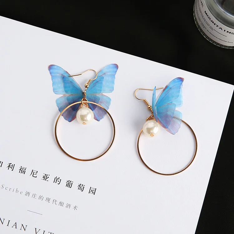 Серьги асимметричные с искусственным жемчугом, модные корейские ювелирные украшения в стиле ретро, с бабочкой, круглыми цветами, длинными массивными крыльями