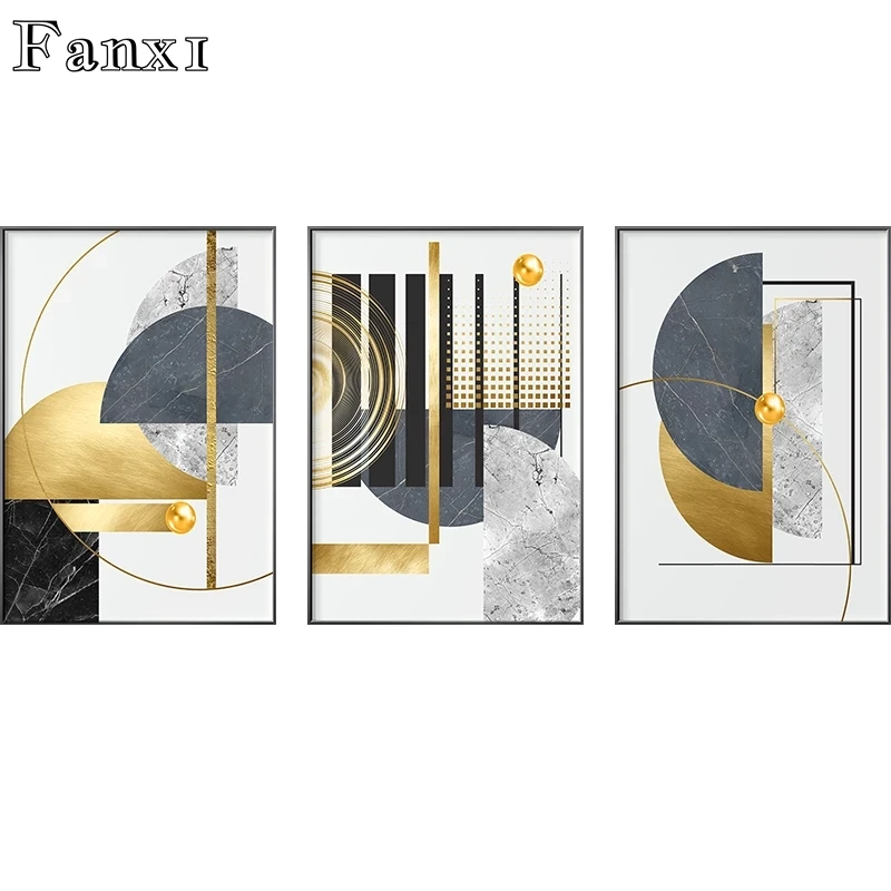 Современный золотой абстрактный геометрический узор вышивка холст печать постер золотой фольги настенные картины для гостиной домашний декор