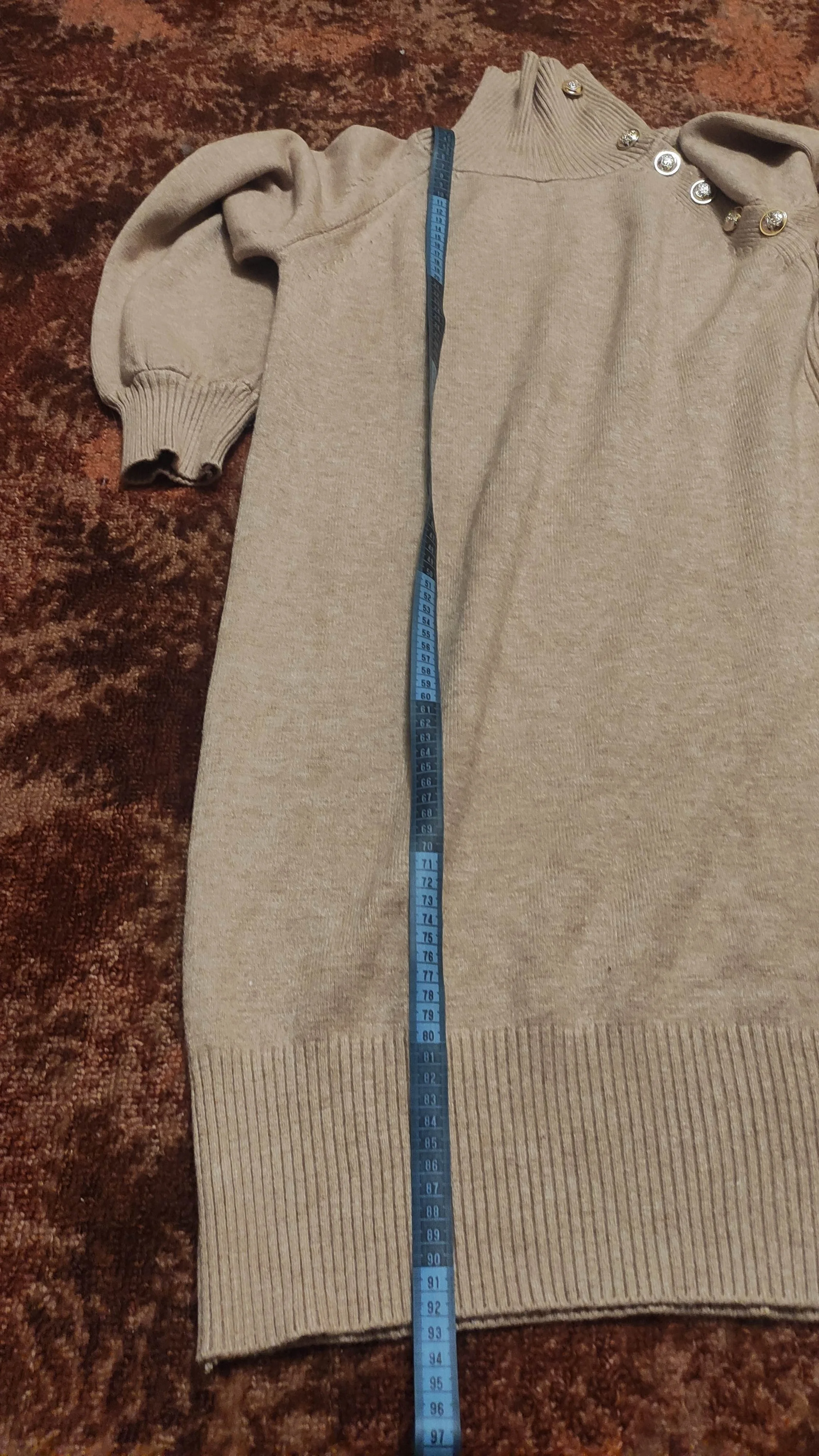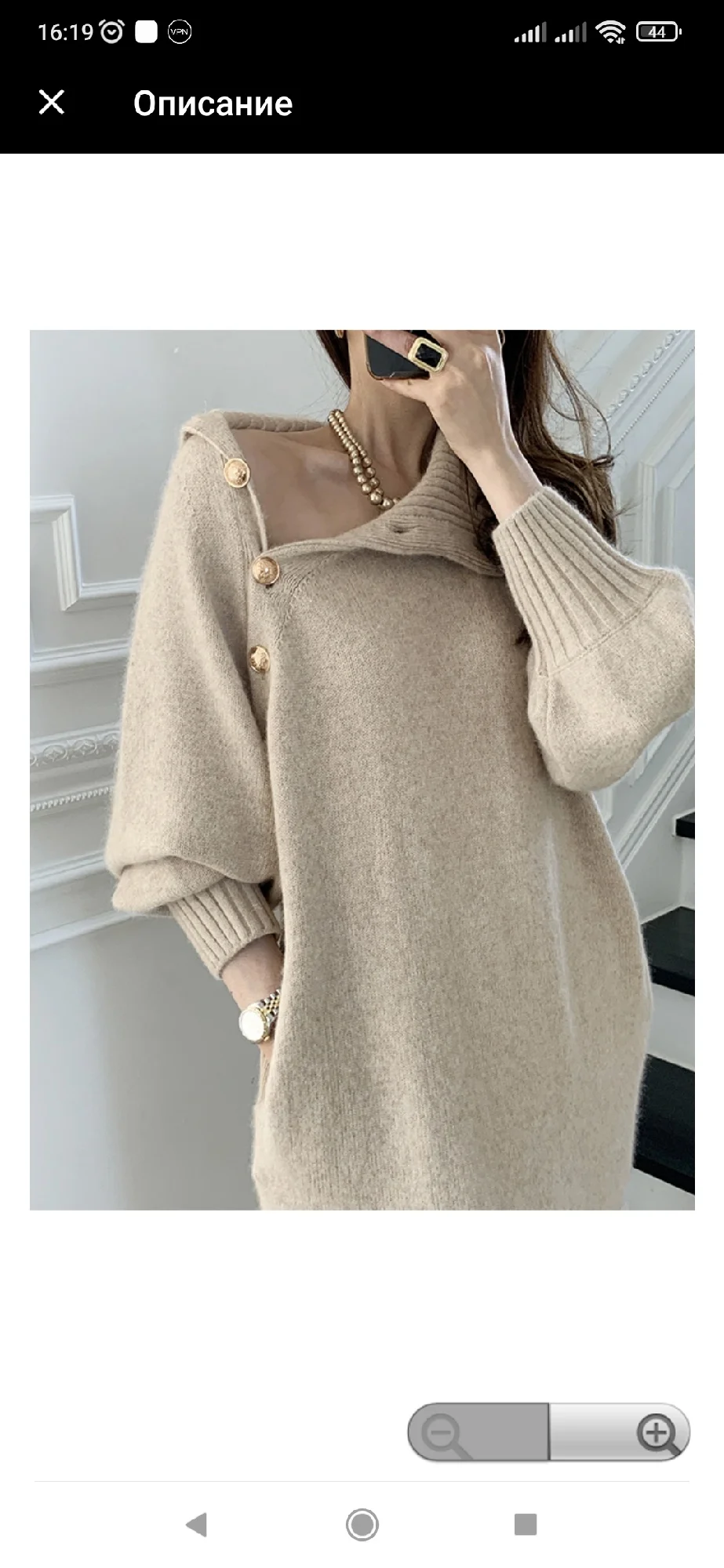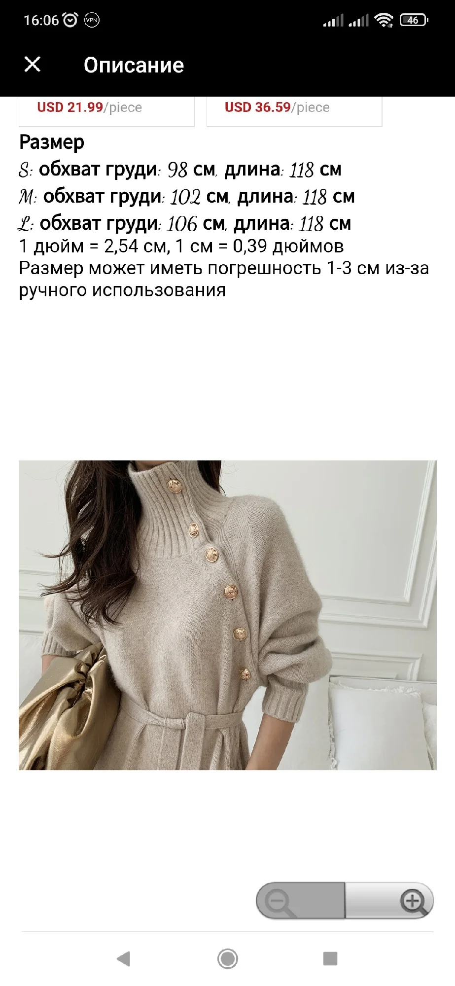 Размер абсолютно не соответствует заявленному продавцом. Длина указана 118см, в реальности 92см, обхват груди указан у продавца 106, в реальности 96см. Платье обтягивает, длина выше колена на рост 168см, рукава короткие. Соединение Воротника некрасиво смотрится, хотя на картинке продавца полотно единое, без стыков. Не рекомендую , размер L подойдёт тем если вы ростом до 160 и размером не больше s.