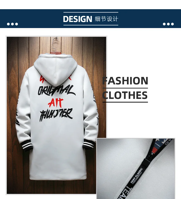 Уличная одежда в стиле хип-хоп, осенняя Корейская мужская куртка, зимний облегающий длинный тренчкот, мужское черное пальто с капюшоном и надписью