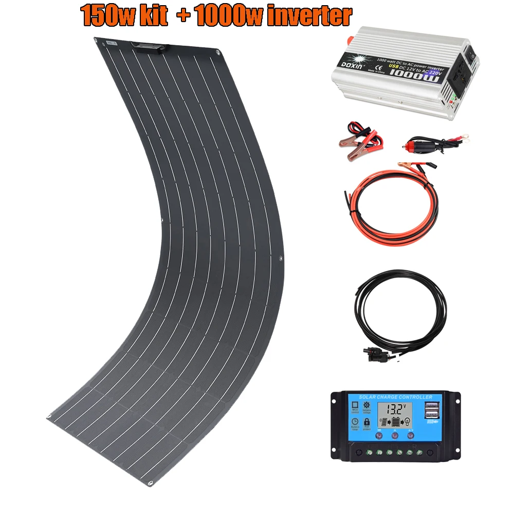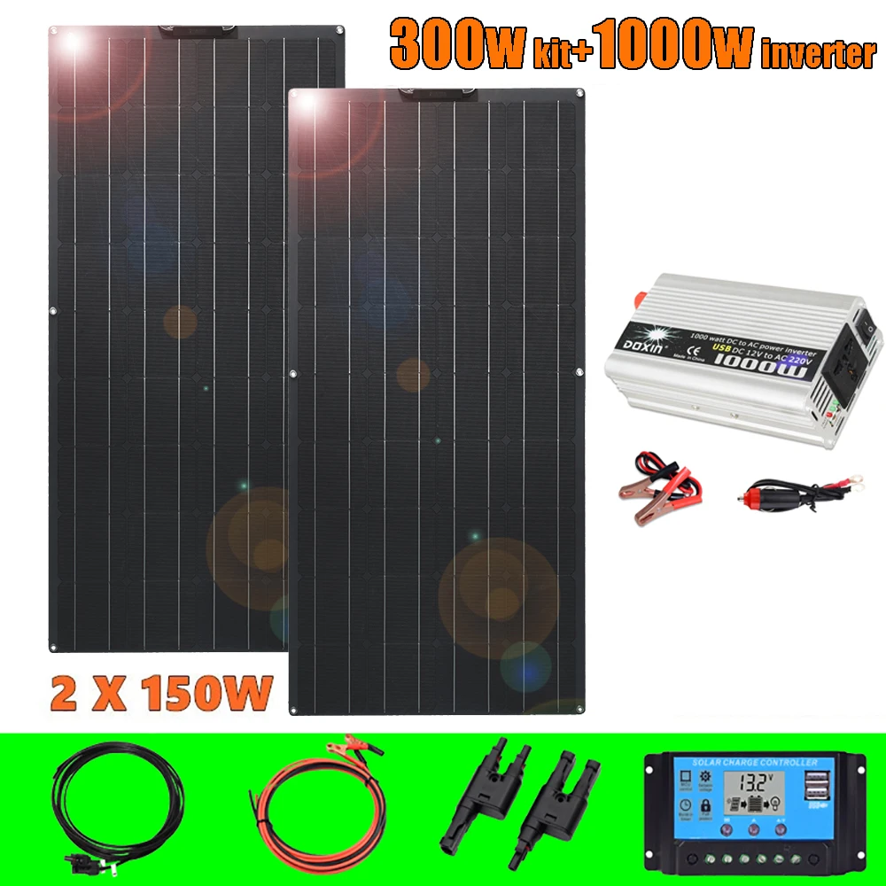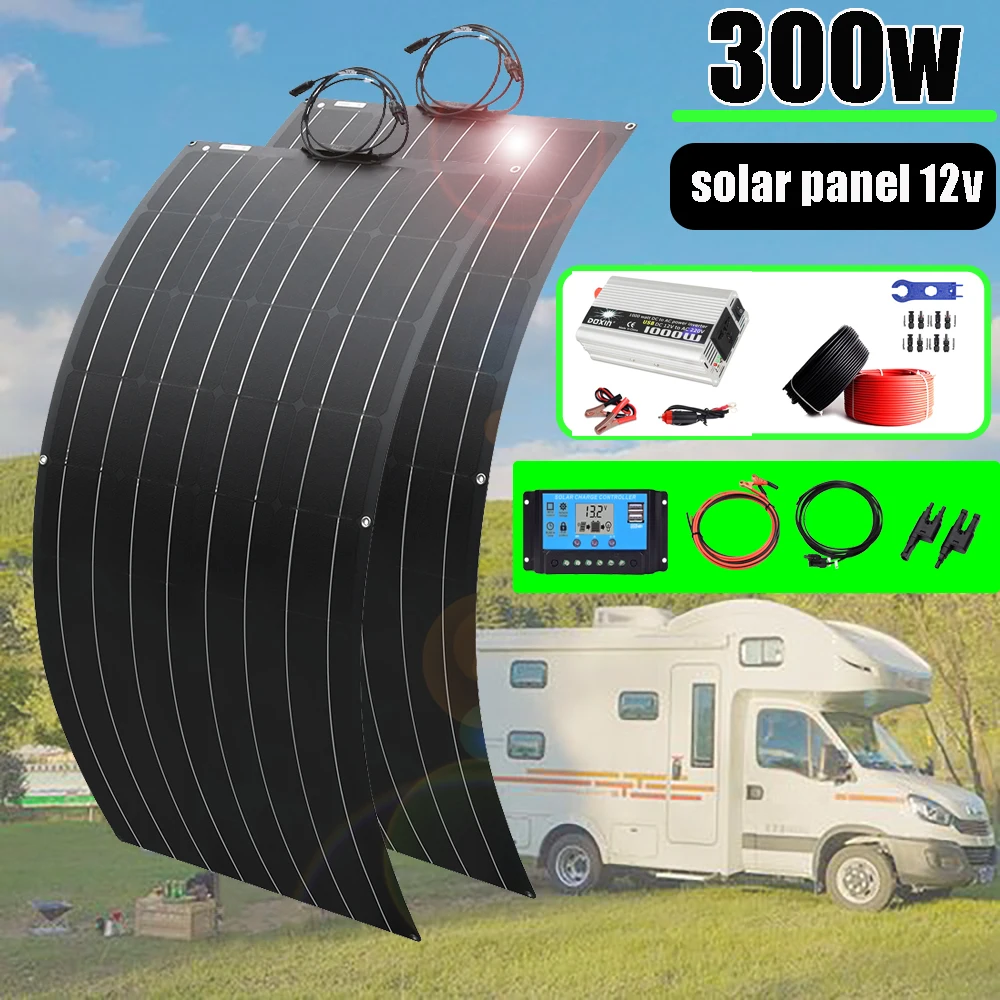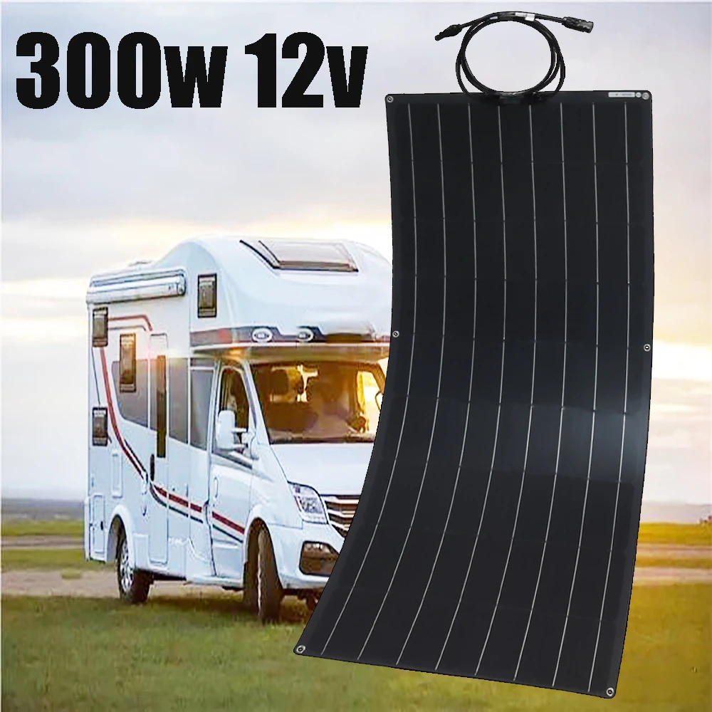 Солнечная панель батарея Гибкая система зарядного устройства 300 Вт 12v Монокристаллический элемент Фотоэлектрический фотоэлектрический модуль для дома RV Караван Лодка Каюта Кемпинг