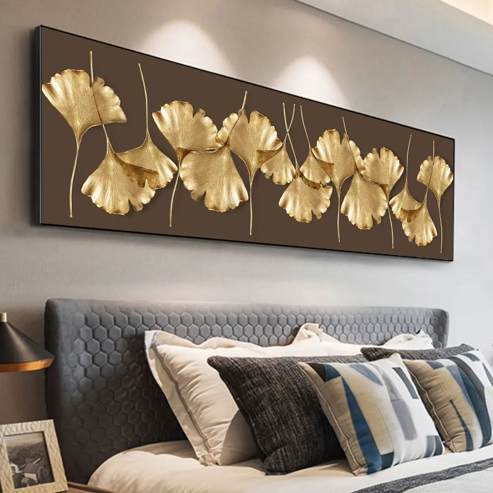 Абстрактные Золотые листья гинкго, абстрактные холщовые постеры и принты, настенное искусство для декора комнаты, настенная живопись