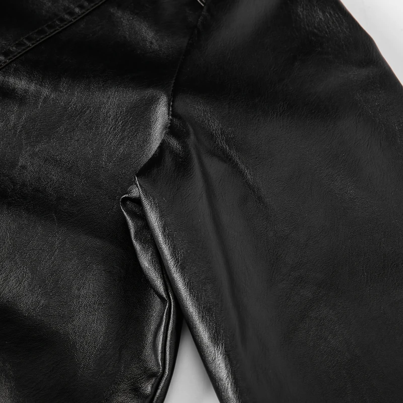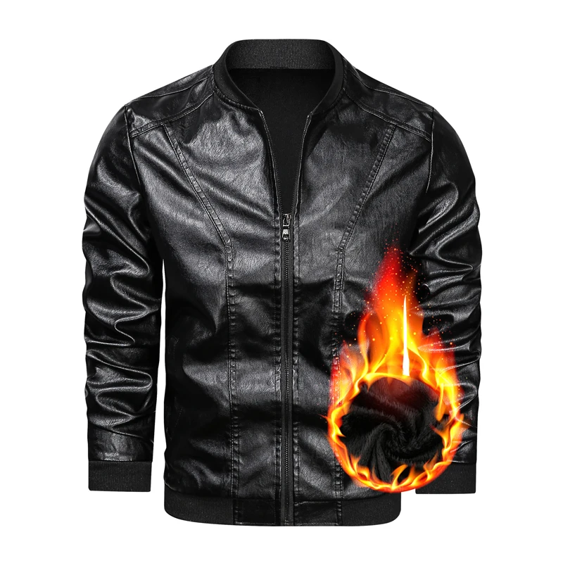 Мужская кожаная флисовая куртка, однотонная тонкая приталенная курт...